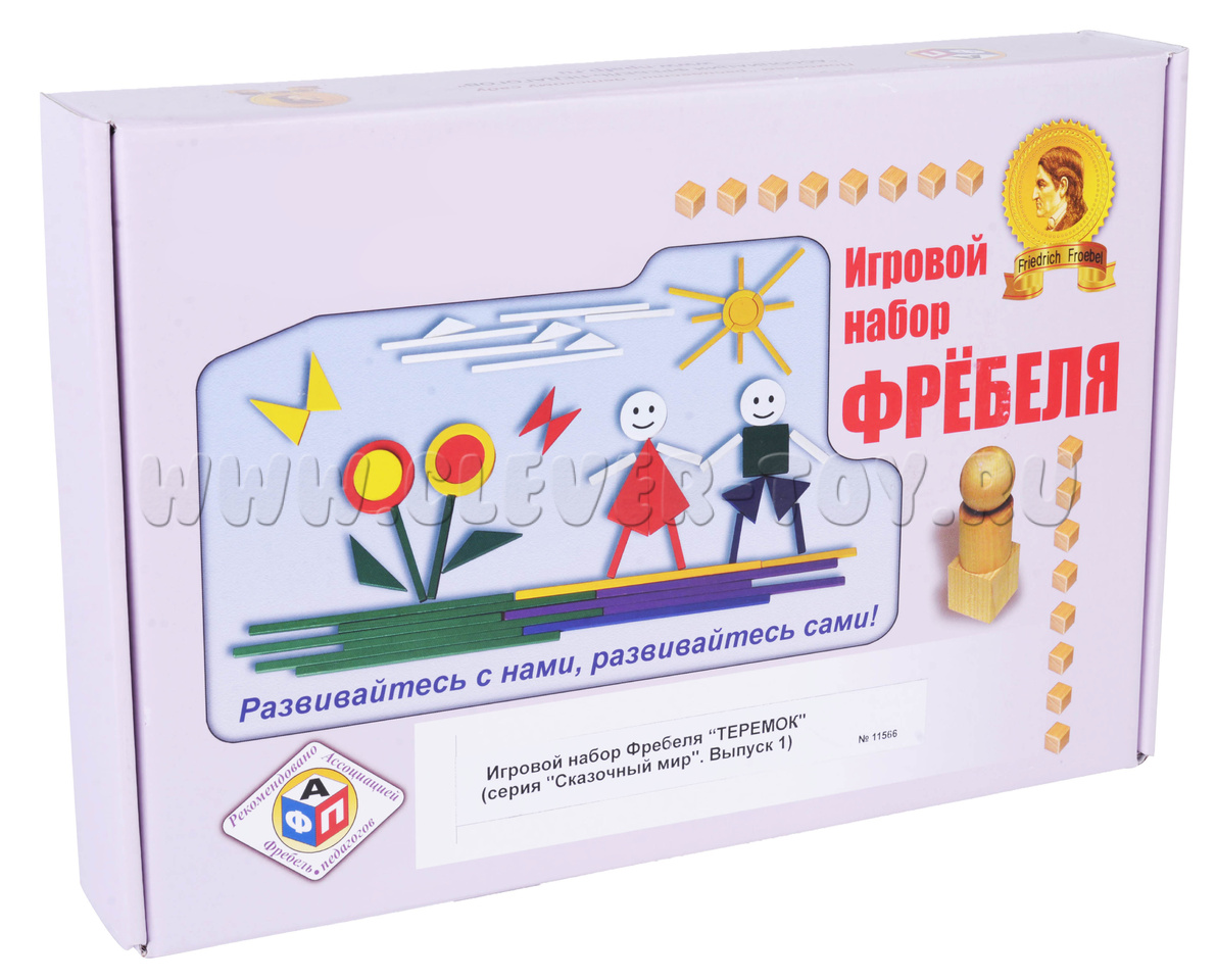 Игровой набор разработан в соответствии с педагогическими принципами Фрёбель-педагогики и представляет собой специально составленные комплекты из элементов «Даров Фрёбеля» с авторскими иллюстрациями по мотивам русских народных сказок.