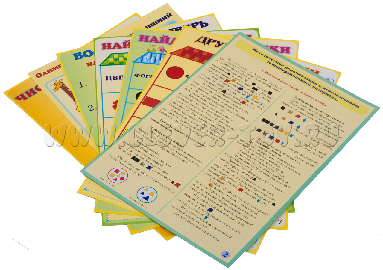 Данный комплект сформирован для детей возрастной группы 2-7 лет и включает в себя и палочки Кюизенера, и блоки Дьенеша, а также совмещенные наборы заданий для них.