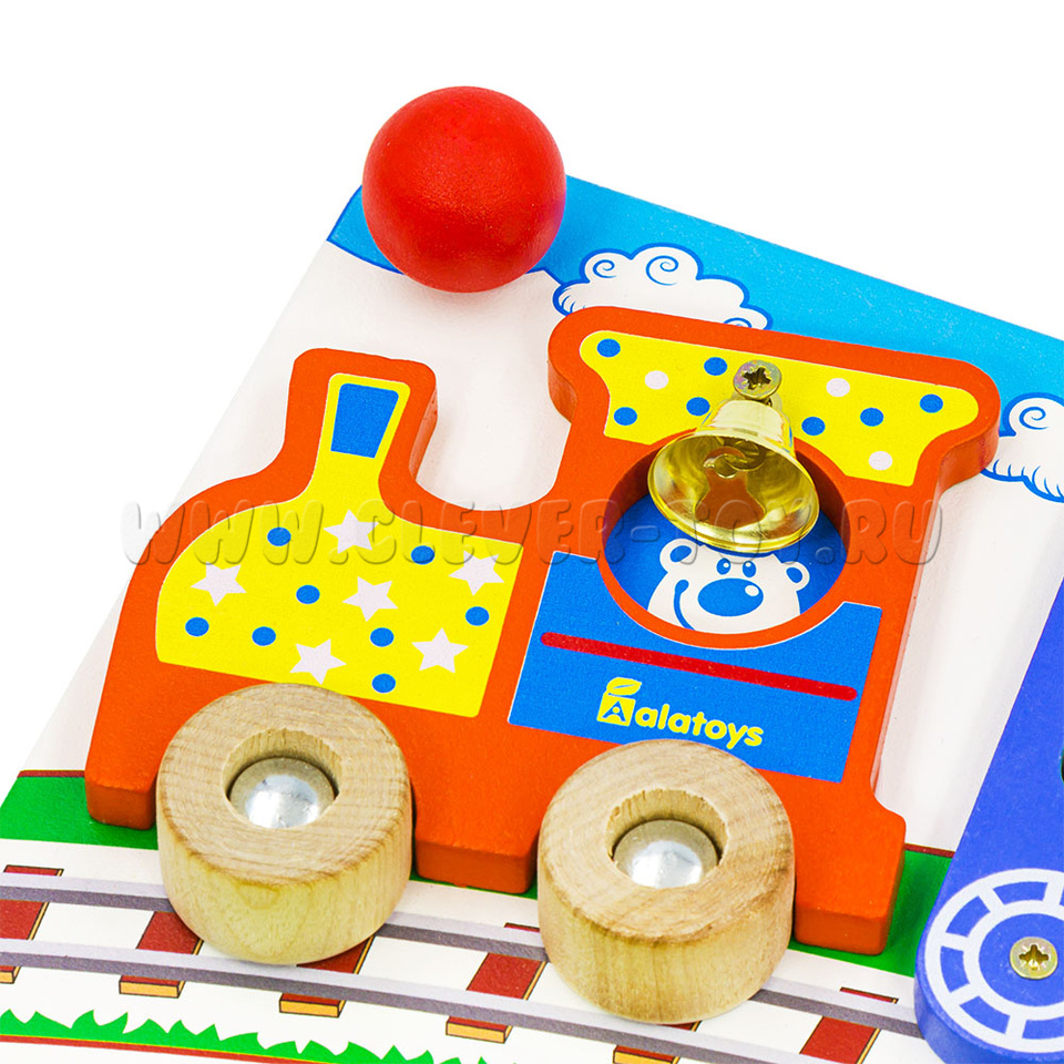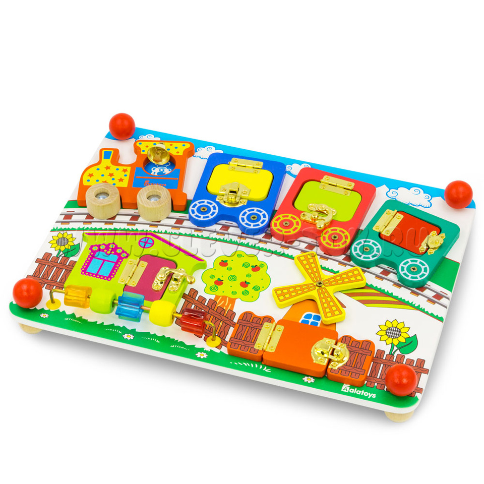 Бизиборд «Вагончики» от крупнейшего производителя деревянных игрушек – фабрики «Алатойс» - выполнен из экологически чистого материала – дерева (берёза).