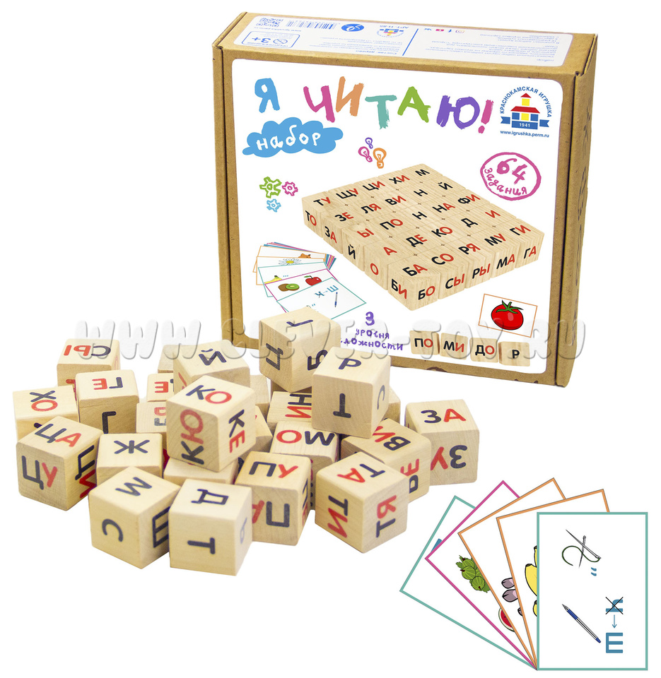 Набор кубиков "Я читаю" с нанесенными на грани буквами и слогами для игр на составление слов.