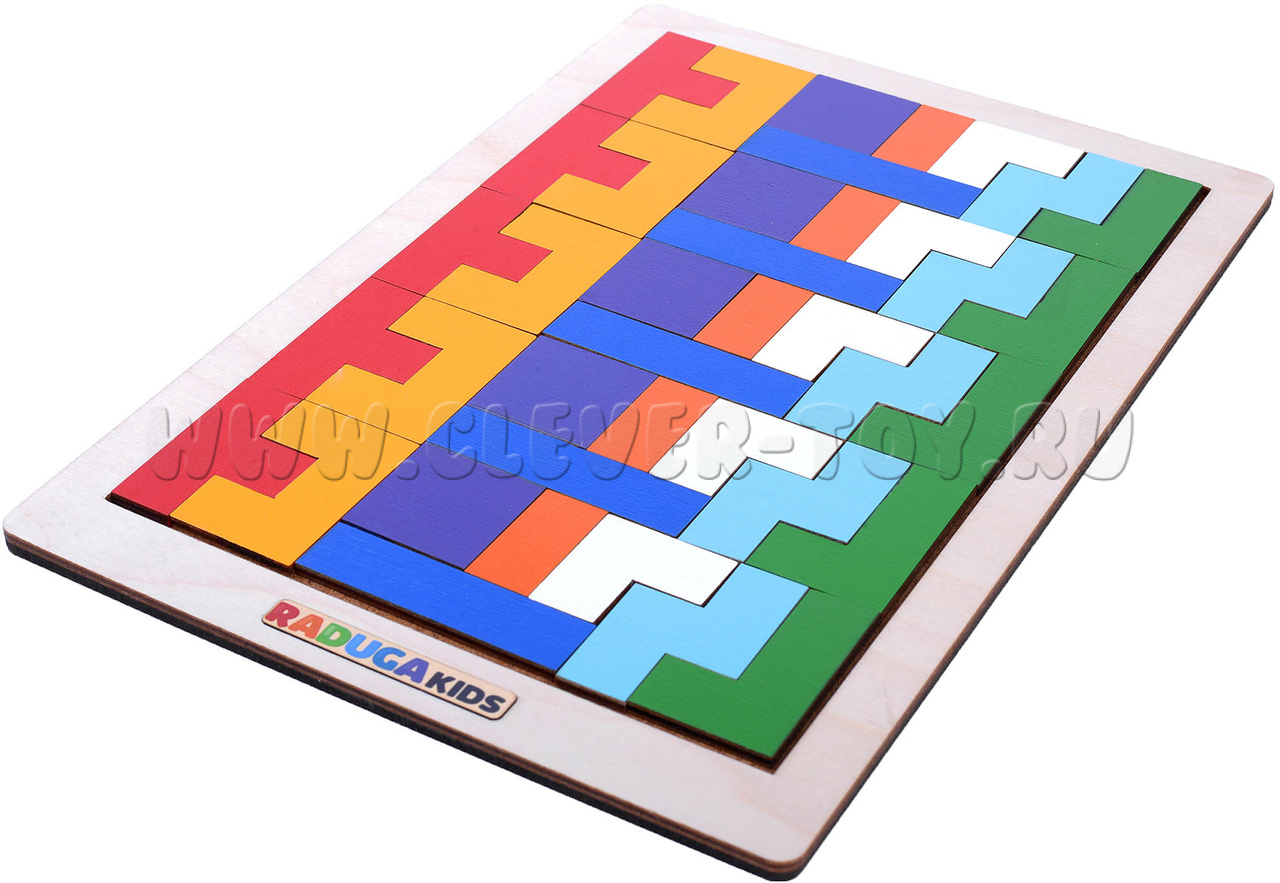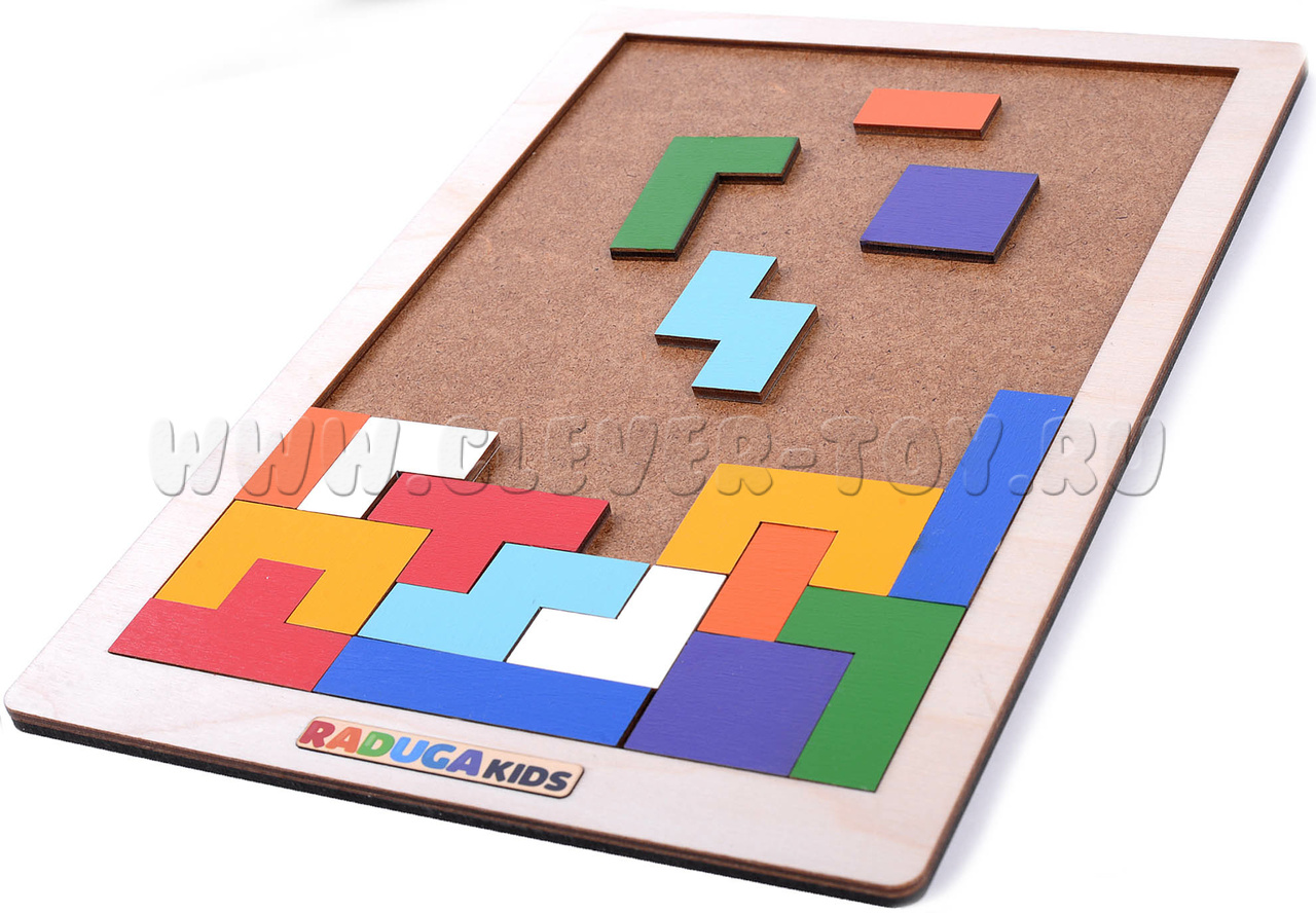 Яркий дизайн и множество геометрических форм привлекут ребенка, и он сам захочет играть в эту детскую головоломку. Но это не просто развлечение, а полезный инструмент для развития множества навыков ребенка. Глазомер, работа с фигурами и пространством, выделение цвета, умение работать по правилам.