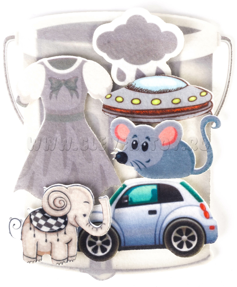 - 12 фетровых фигуры с изображением разноцветных ведёрок,