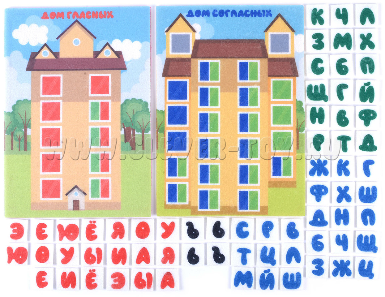 - Игровое поле в виде 2-х домов – Дом для гласных, Дом для согласных;