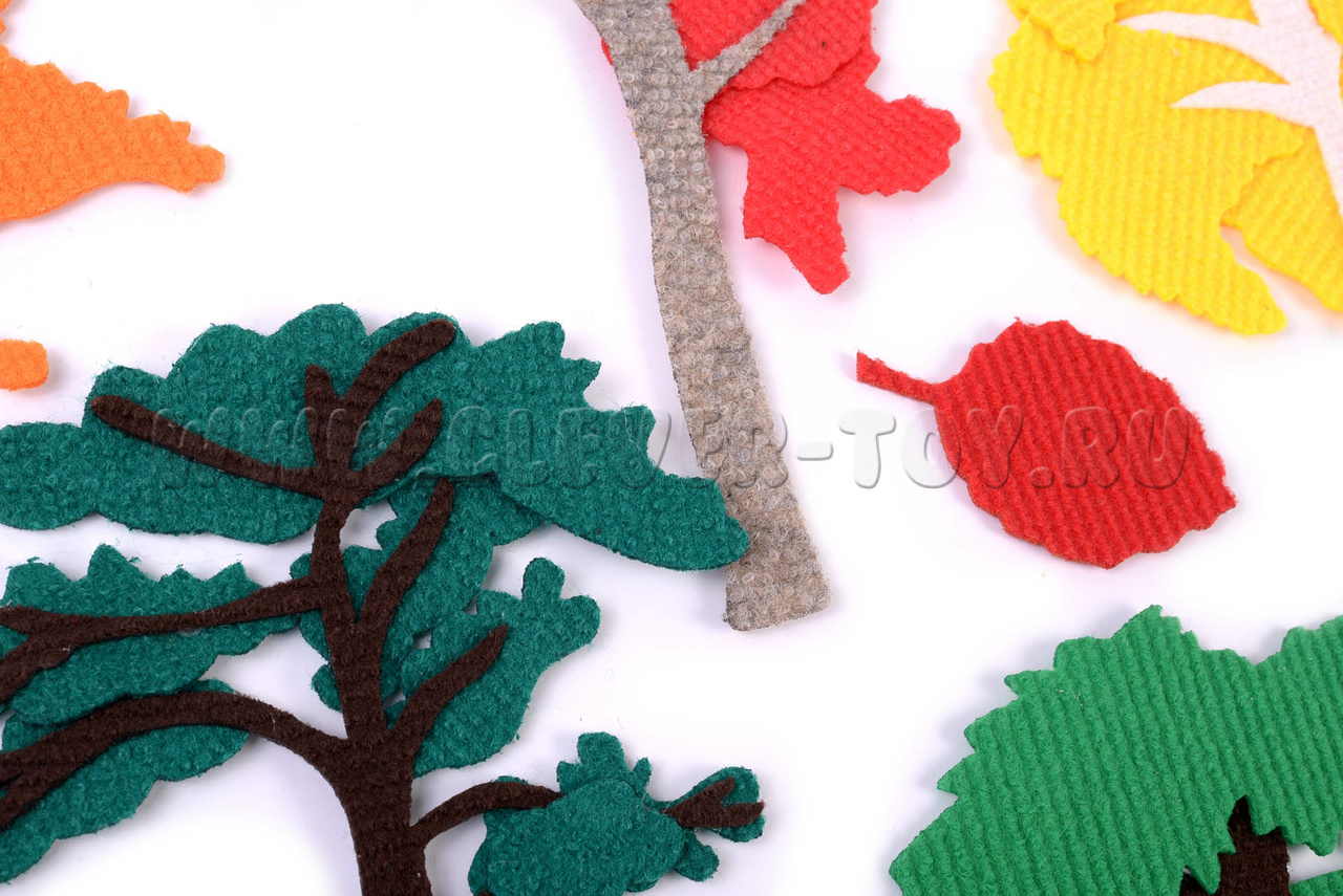 "Городские деревья" из прочного ковролина вырезаны на специальном станке, ровные, аккуратные, на липучках, легко крепятся на основу. Прорисованы вручную.