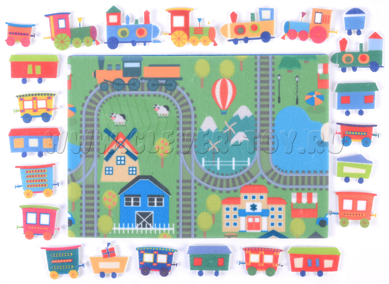 • игровое поле, на котором изображено железнодорожное полотно, а также окружающий мир – озёра, дома, городские и сельские пейзажи, ветряные мельницы;