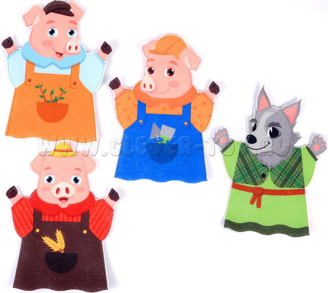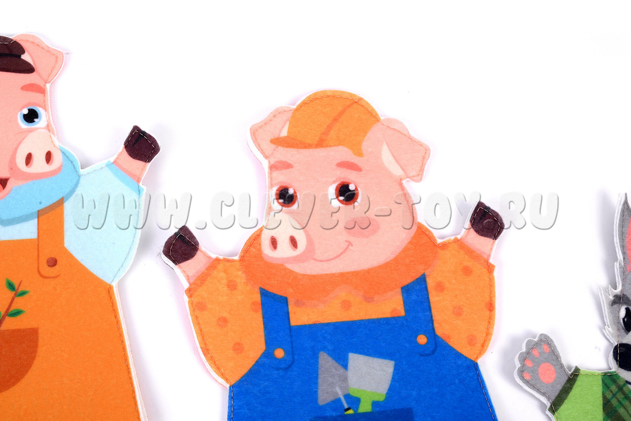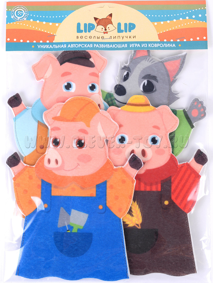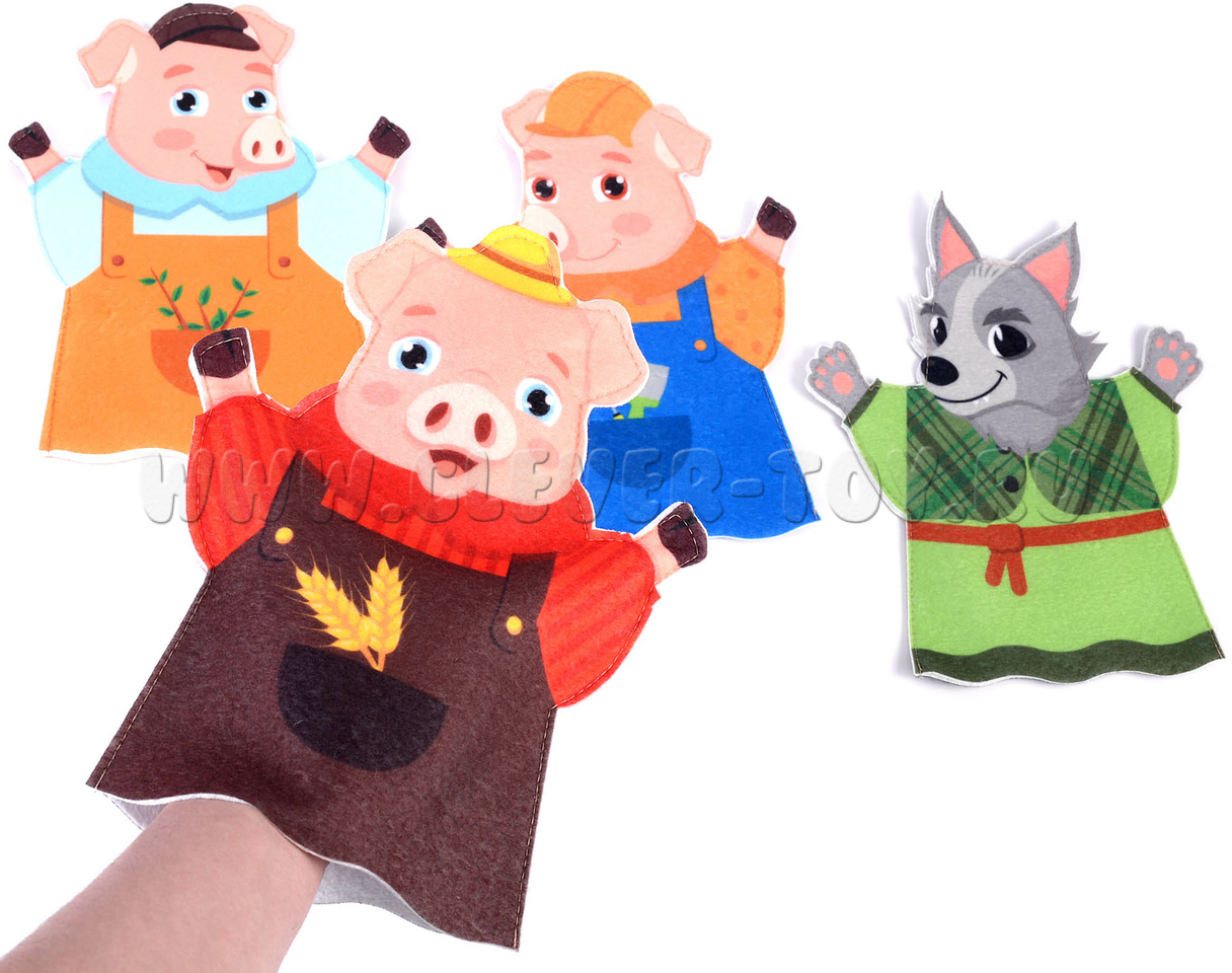 Театр на руку "Три поросенка" – многоразовый набор фигурок для разыгрывания увлекательных спектаклей домашнего театра и организации дидактических занятий, нацеленных на развитие речи, памяти, внимания, творческого мышления и артистических способностей.