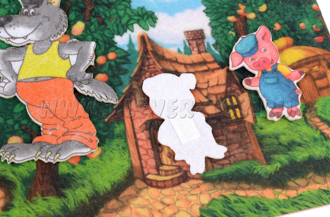 Набор Веселых липучек “Три поросенка“ сделан из фетра. В комплекте идет игровое поле и персонажи из сказки. А также есть карман, куда можно убрать игрушки после игры.
