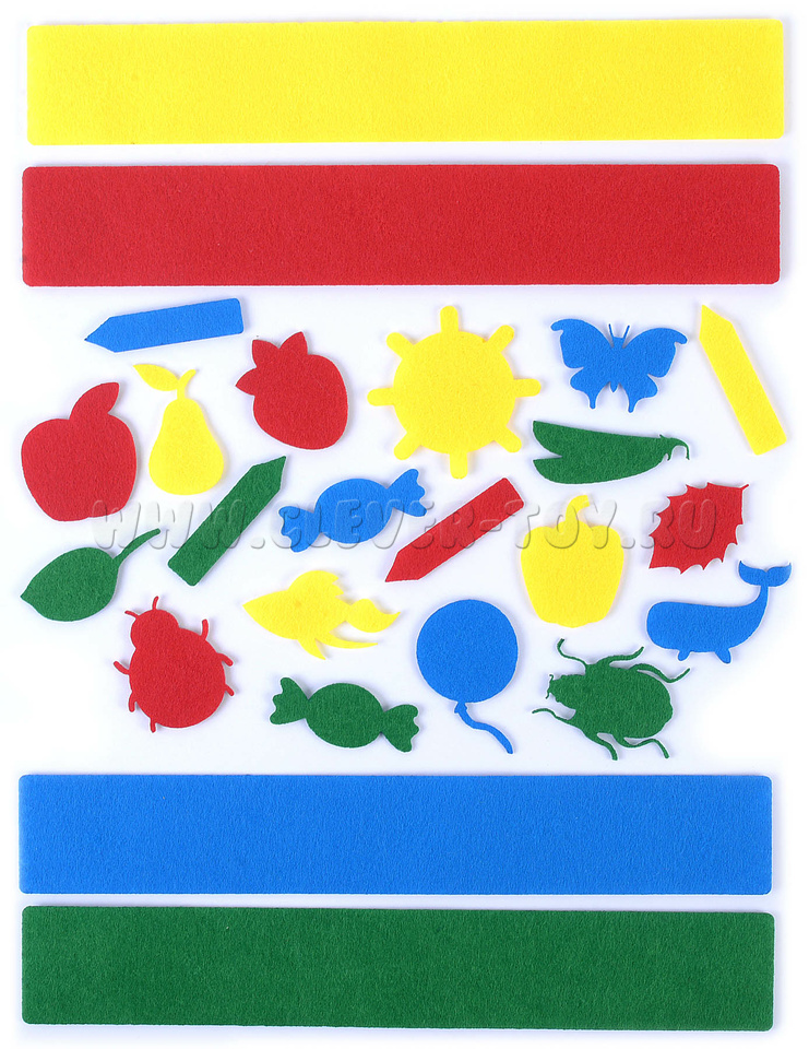 • Набор из 24 деталей (желтые, синие, зеленые, красные полоски и фигурки),