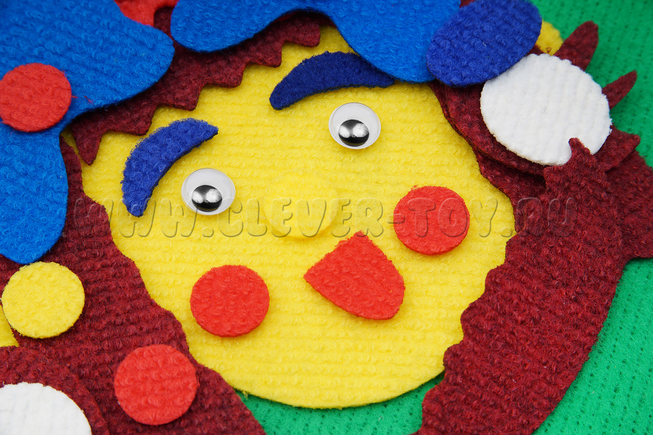 • игровые элементы разных размеров, цветов и форм на многоразовых липучках: овалы лица, уши, губы, волосы, брови, носики, усы, хвостики с бантиками;