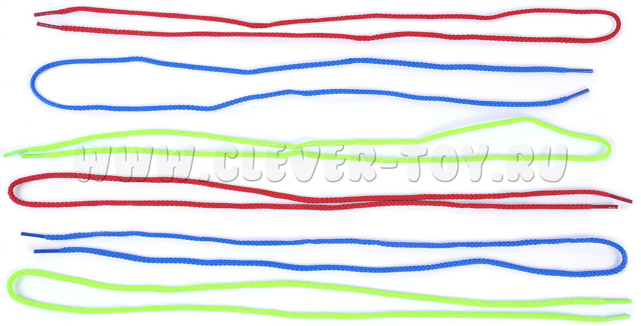 • 3 разноцветных шнурка (синий, красный, зелёный);