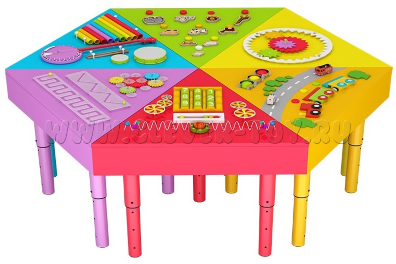 Детский комплекс состоит из 6 треугольных столиков, которые объединены в круг. При такой организации учебного процесса будут задействованы все дети и каждый из них будет чувствовать свою значимость и сможет выразить свои чувства и эмоции.