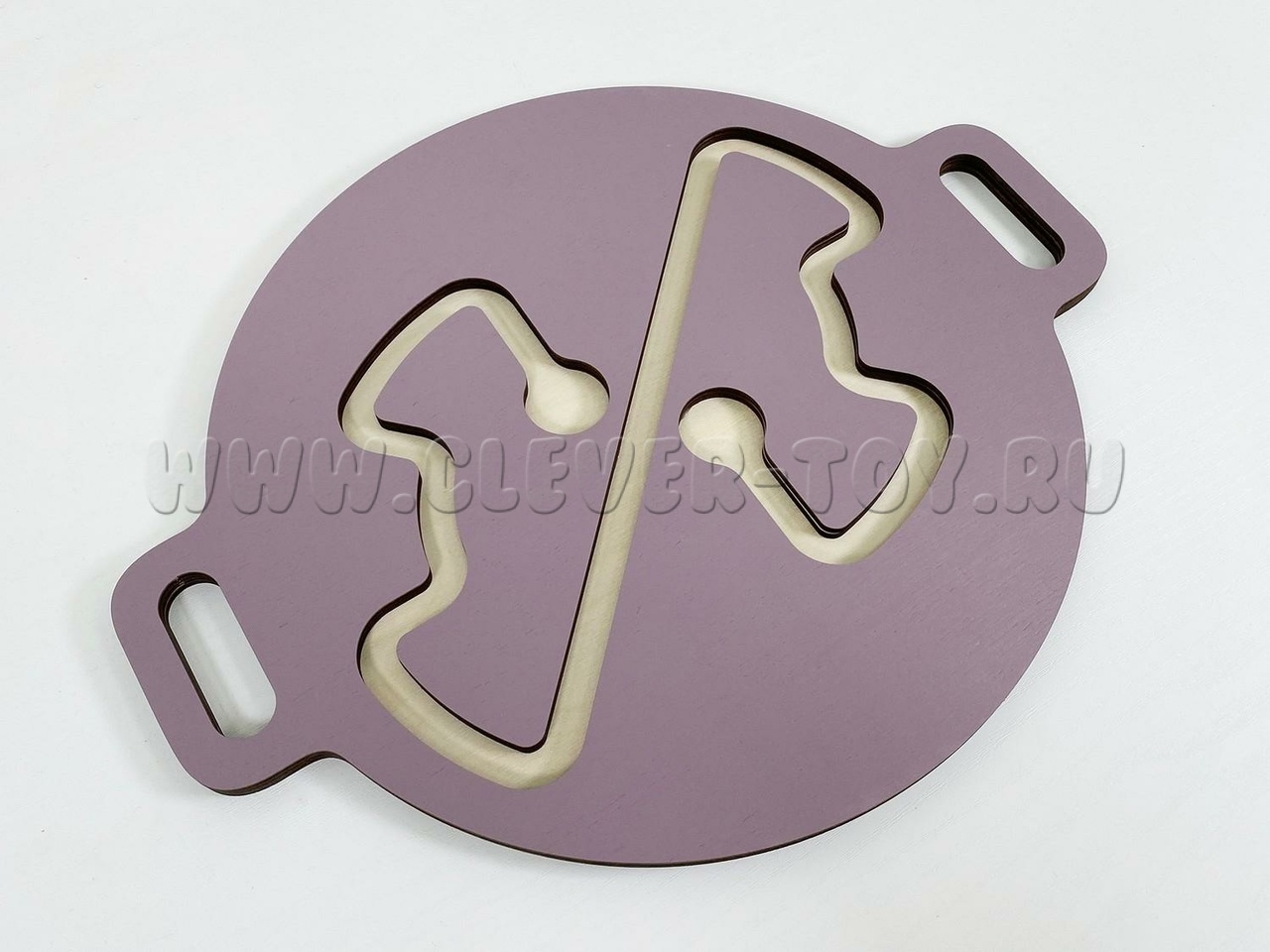 Он представляет собой круглую доску с двумя ручками по бокам и лабиринтом. Задача ребёнка — прокатить шарик через лабиринт, используя движения рук. Игра с балансиром развивает крупную моторику, пространственную ориентацию, логическое мышление и улучшает концентрацию внимания и усидчивость.