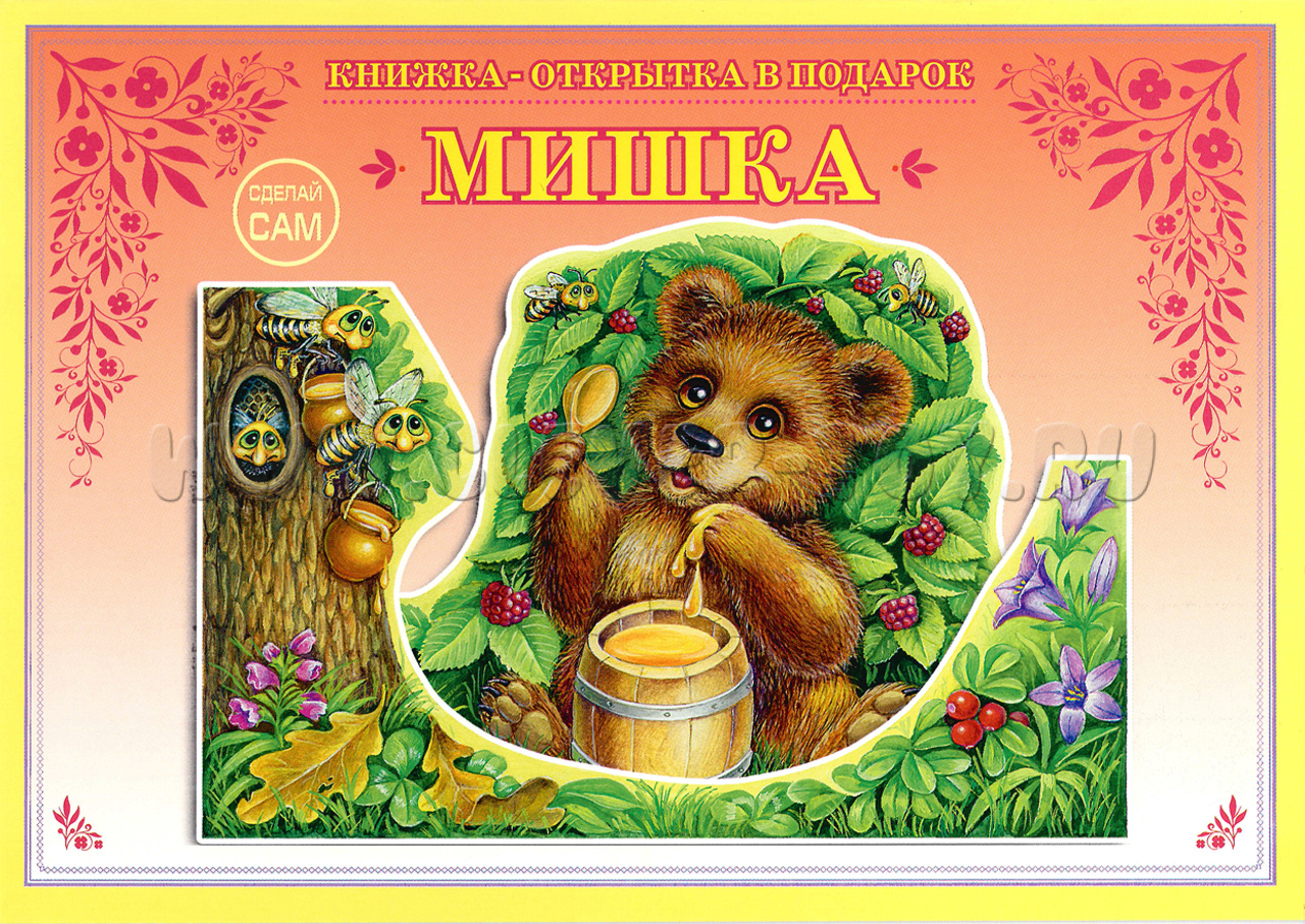 3D объёмная открытка-книжка для детского творчества "Мишка".