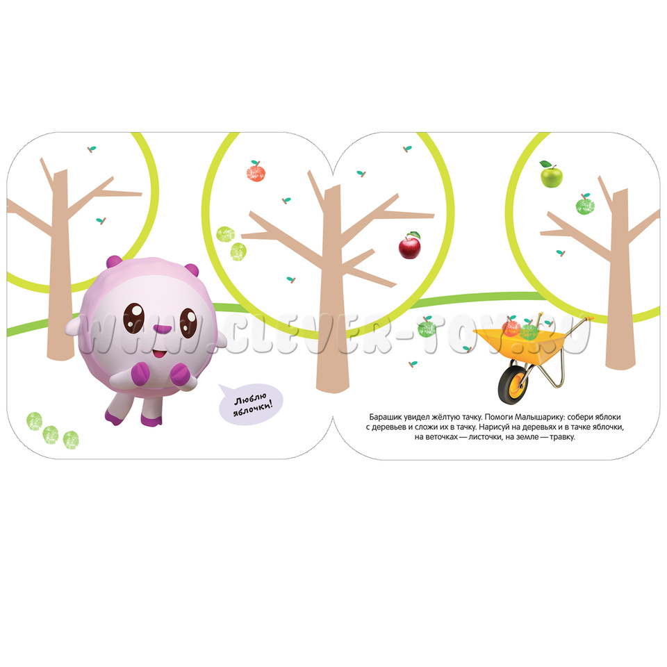Любимые герои детей – очаровательные Малышарики – на этот раз приготовили для вашего малыша творческое задание – рисование пальчиками. Рисунки в книге напечатаны таким образом, что вашему малышу будет достаточно оставить несколько цветных отпечатков одного пальчика, чтобы почувствовать себя настоящим художником.