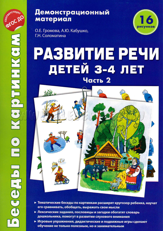 Тематические беседы по картинкам расширят кругозор ребенка, научат его сравнивать, обобщать, выражать свои мысли. Лексические задания, пословицы и загадки обогатят словарь дошкольника, помогут в развитии слухового внимания. Игровые упражнения, дидактические и подвижные игры сделают обучение не только полезным, но и занимательным.