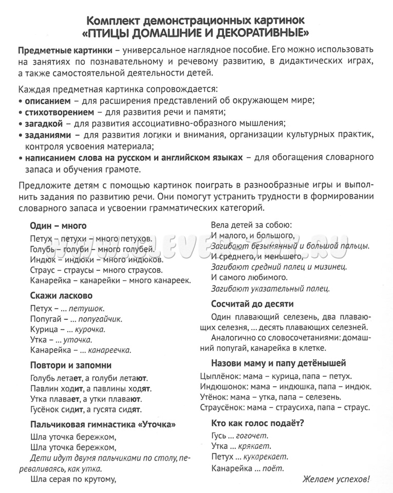 Устраивая занятия по этим наглядным пособиям, вы сможете познакомить детей с удивительным миром птичьего царства, а также научите детей развивать речь, логическое мышление и разовьете кругозор.