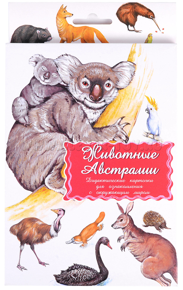 На одной стороне карточки расположена яркая картинка с изображением и названием животного Австралии (изображение детальное и реалистичное), на обратной стороне – доступная для ребёнка информация животных и птицах (описывает внешний вид животного, ареал обитания, особенности питания и строения, интересные факты о происхождении животных Австралии). Карточки выполнены из прочного картона, подходят для многократного использования. За одно занятие рекомендуется изучать одну карточку.
