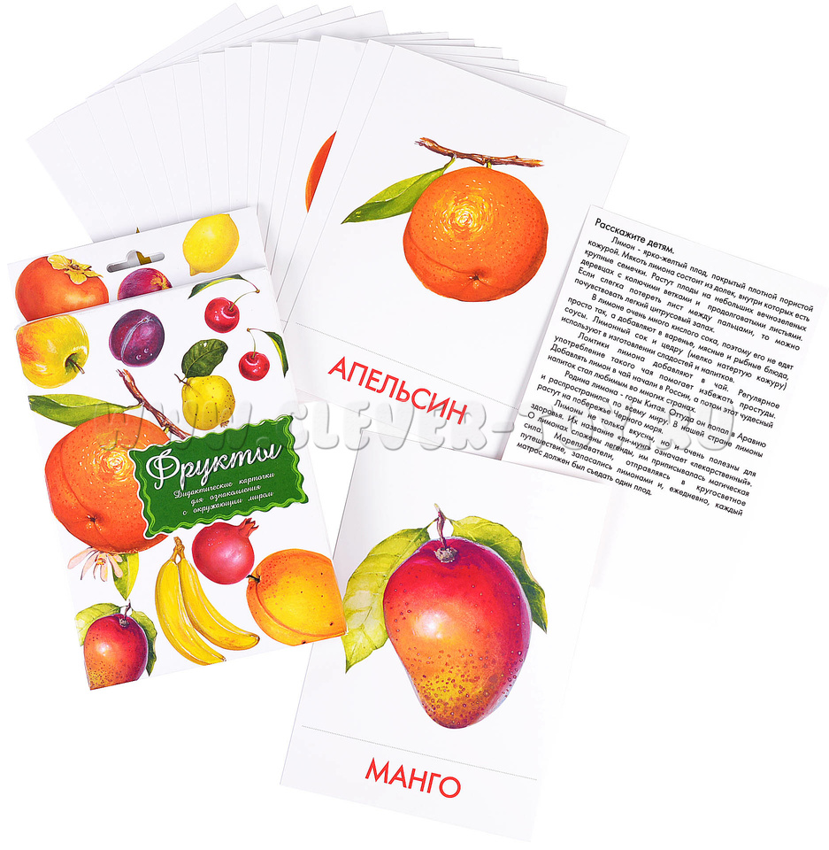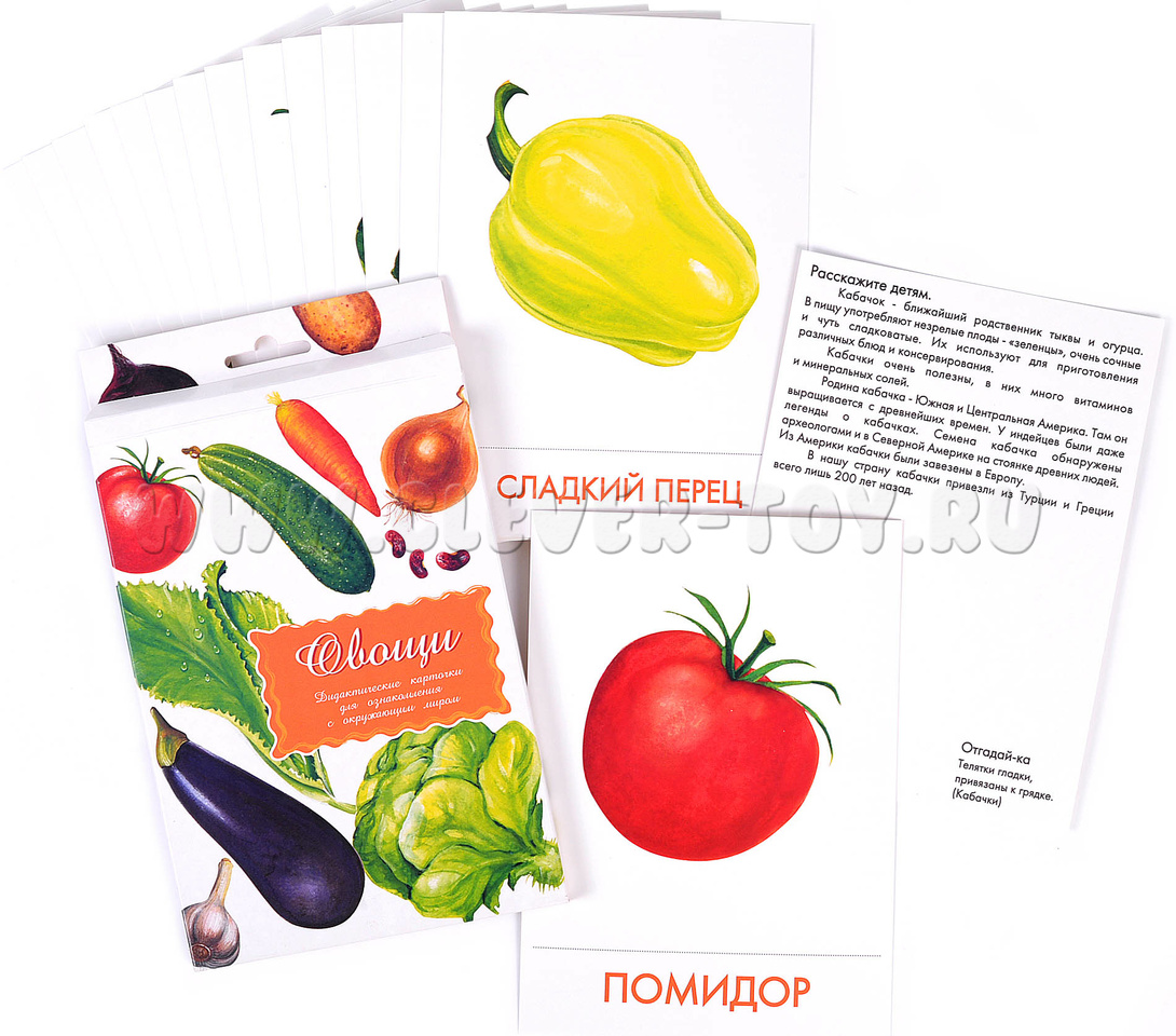 В набор входит: Дидактические карточки "Овощи" Дидактические карточки "Фрукты" Дидактические карточки "Продукты питания"
