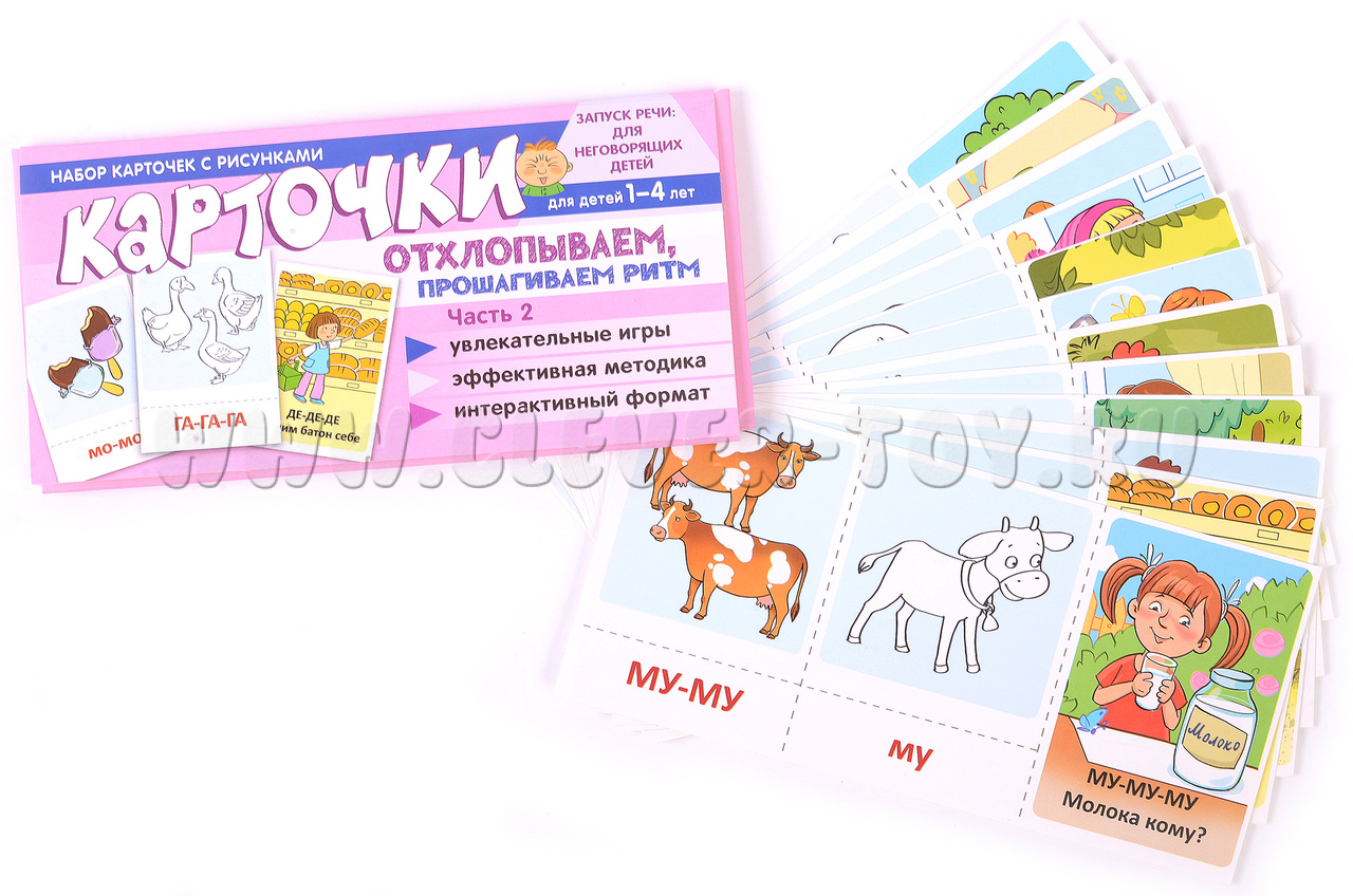 Набор "Отхлопываем, прошагиваем ритм. Часть 2" - это 12 листов, на которых собраны 60 карточек и 4 увлекательные игры. Он предназначен для детей от 1 года до 4 лет.