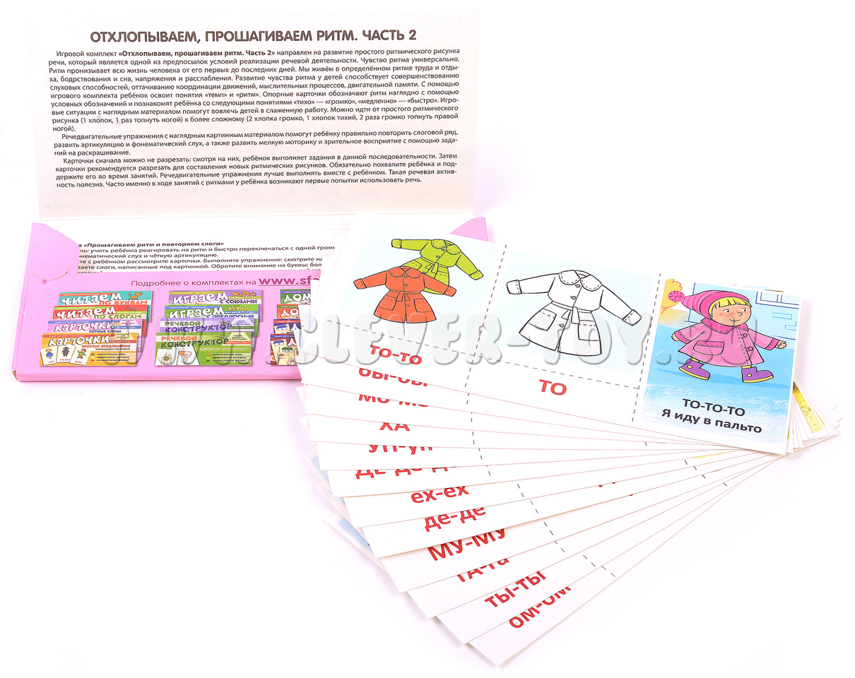 Задания в этом наборе разработаны в игровой форме и направлены на то, чтобы помочь неговорящему ребёнку развить простой ритмический рисунок речи.