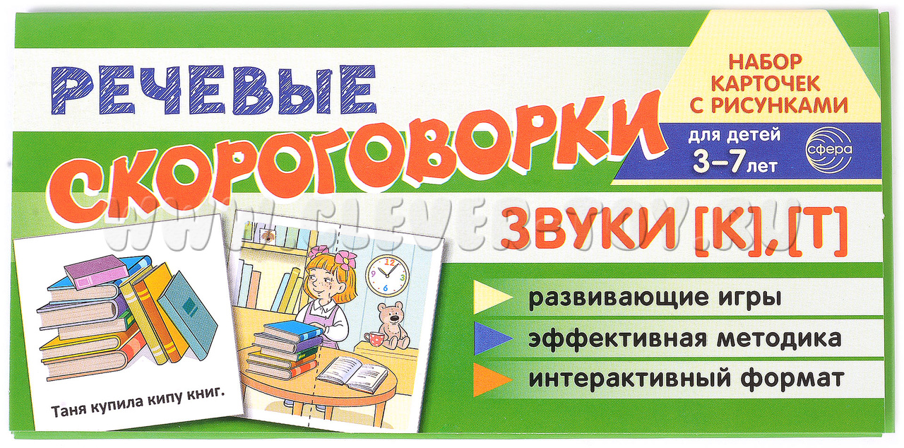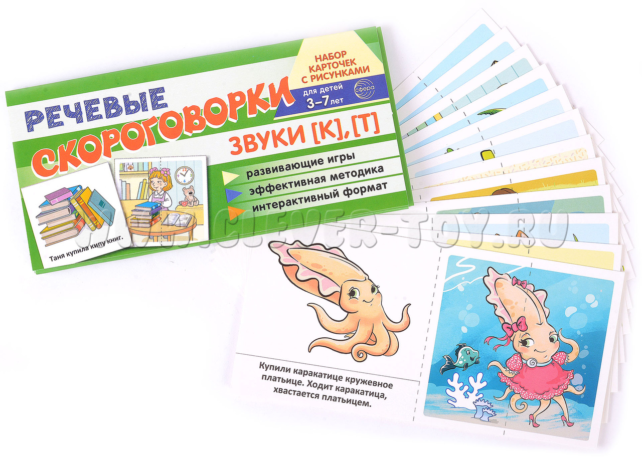 Набор карточек с рисунками. Речевые скороговорки. Звуки [К], [Т]. Для детей 3-7 лет