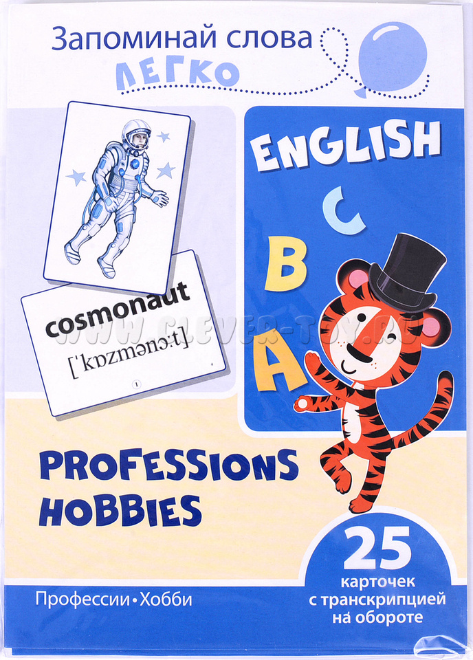 Запоминай слова легко. Профессии, хобби. 25 карточек с транскрипцией на обороте. Английский язык