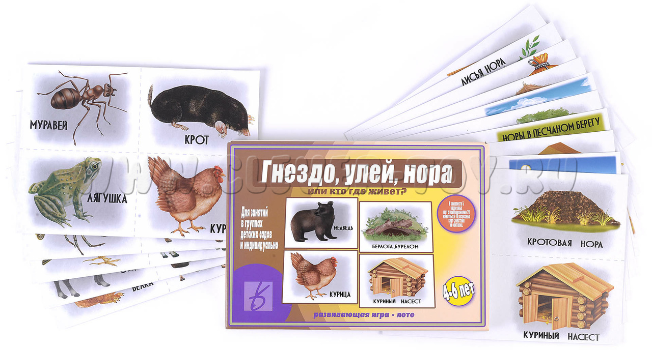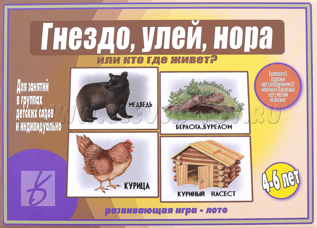 Развивающая игра "Гнездо, улей, нора или кто где живет"