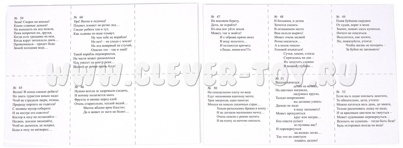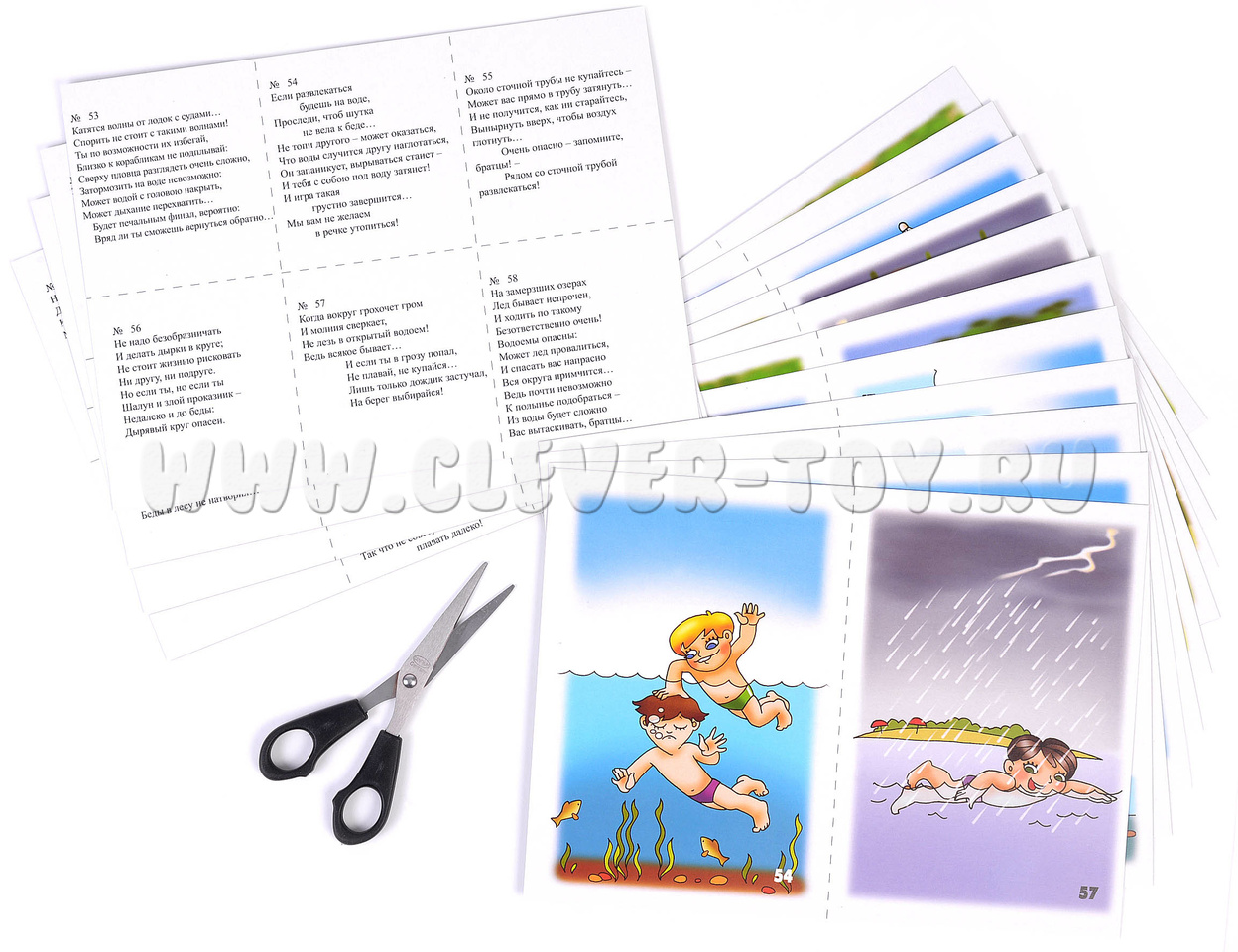 Материал включает в себя 15 карт формата А4: 22 сюжетные картинки и 22 небольших стихотворения – по одному на каждое правило. Перед началом занятия родителю или педагогу необходимо разрезать карты по пунктирным линиям. Играть можно несколькими способами: