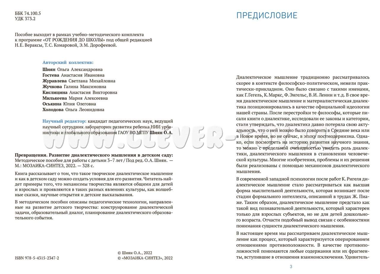 Превращения. Развитие диалектического мышления в детском саду. 3-7 лет. ФГОС