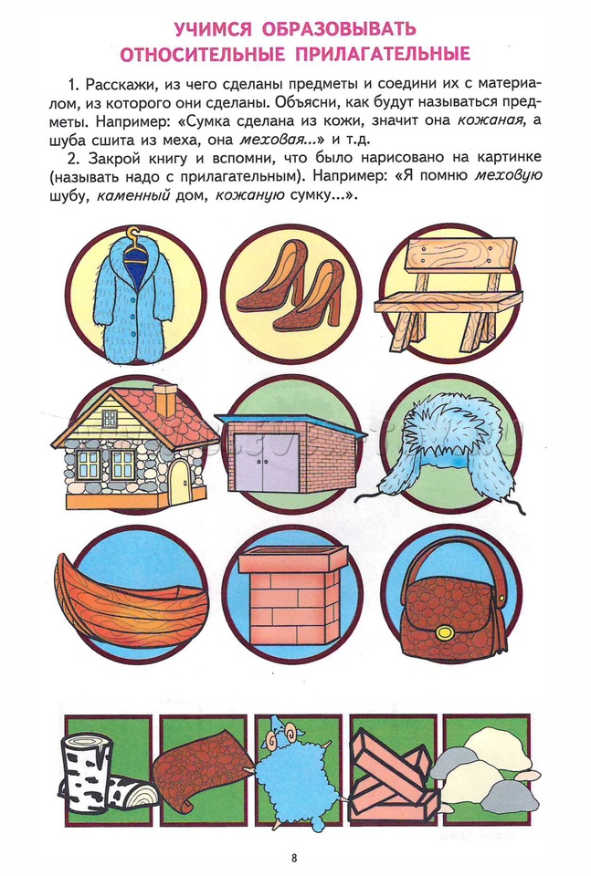 Материал, представленный в грамматической тетради № 4, усложняется: дети научатся образовывать относительные и притяжательные прилагательные, натренируются в образовании сравнительной степени прилагательных, обогатят словарный запас антонимами, синонимами и сложными прилагательными.