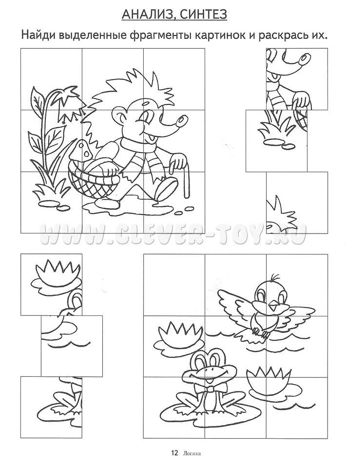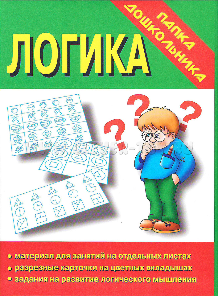 Внутри вы найдете множество заданий на отдельных листах, разрезные карточки (цветные), задание на развитие логики.