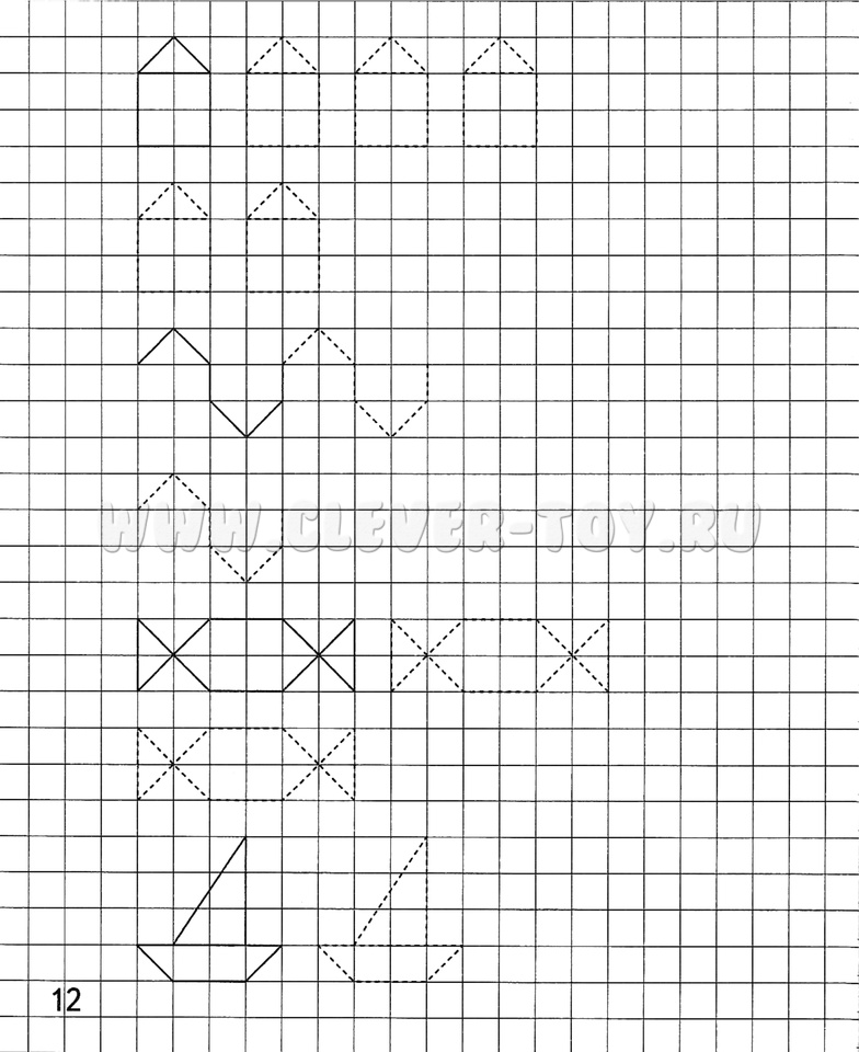 Развивает логическое мышление, внимание, усидчивость, тренирует умение строить графические объекты, умение ориентироваться на бумаге в клетку.