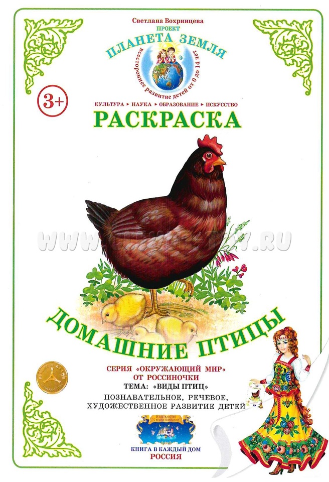 Раскраска "Домашние птицы" предназначена для детей от 3 лет. Она содержит яркие иллюстрации домашних птиц и предлагает 9 листов с контурами для раскрашивания. Эта раскраска помогает детям формировать и расширять представления о домашних птицах, развивать познавательные интересы, творческие способности и навыки устной речи.