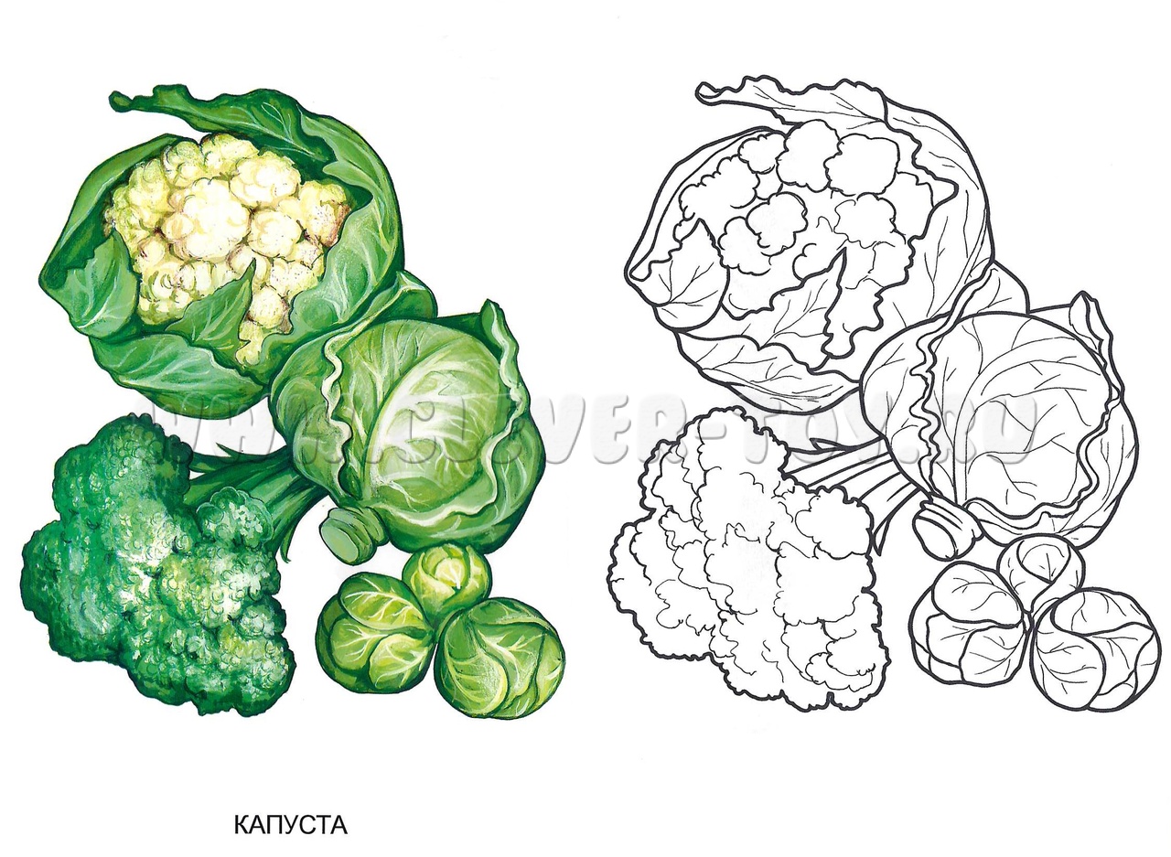 Иллюстрации в раскраске (Овощи):