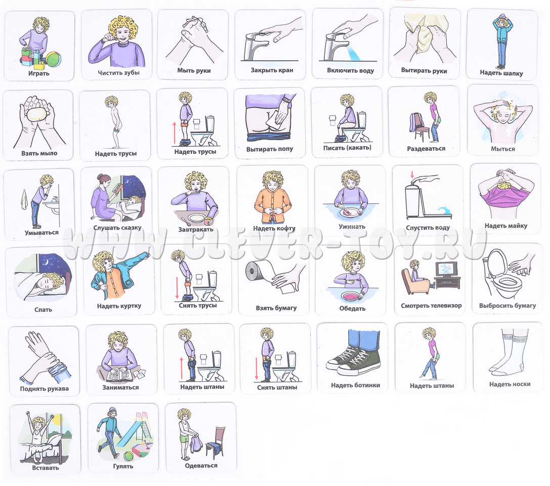 В блокноте 4 магнитных страницы и 38 магнитных карточек с действиями. Так же в наборе есть карточки для поощрения ребенка (жёлтого и красного цветов). Главное их достоинство, что с ними очень легко работать: они не падают на пол от неосторожного движения, не раздражают этим ребенка и не отвлекают его.