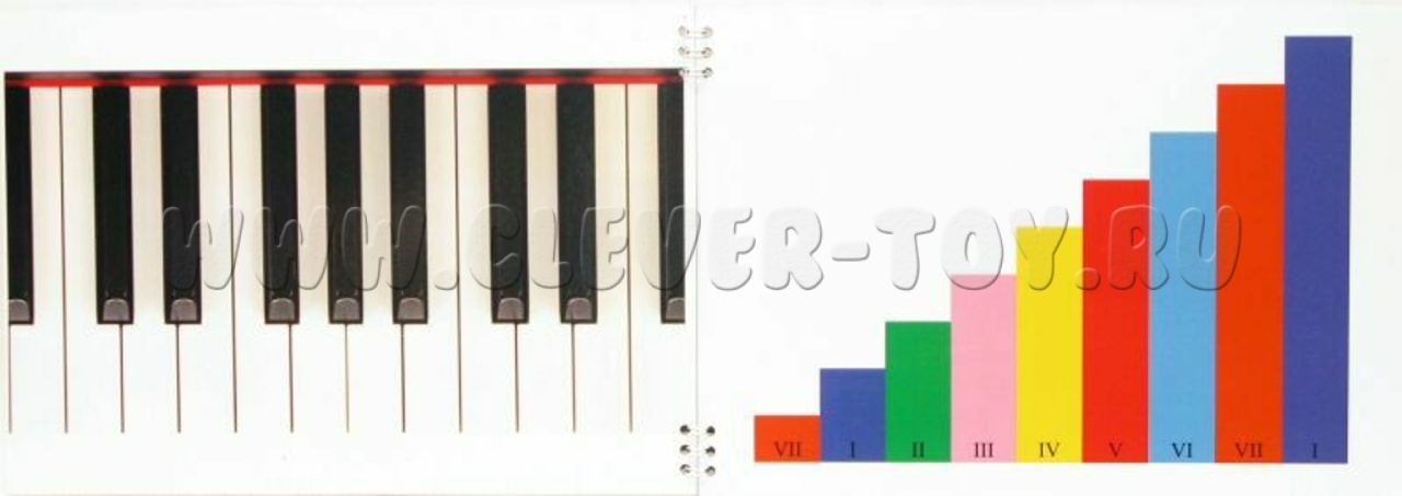 Обратная сторона полей, НЕ магнитная, но тоже "рабочая": на одной половине изображены клавиши пианино, на другой - цветная музыкальная гамма.