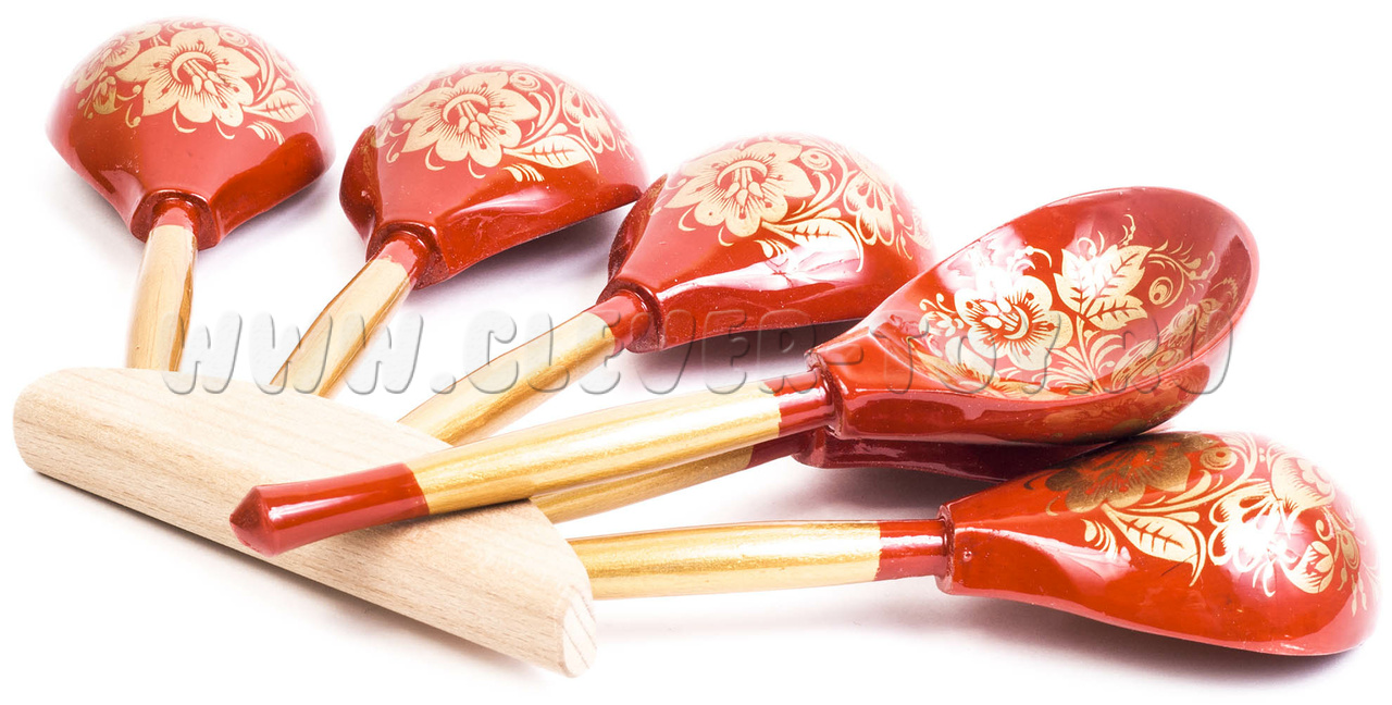 Ложки - это необычный и красочный музыкальный инструмент. Он всегда привлекает внимание публики на концертных выступлениях. Исполнитель играет на нем, ударяя специальной ложкой по другим веерным ложкам,закрепленным на буковом бруске. Здесь используется техника скольжения и ритмичные единичные удары.