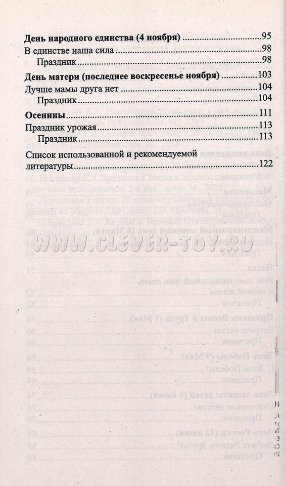 Содержание книги включает беседы о таких праздниках, как Новый год, День Победы, День защиты детей, Дню России, которые выстроены в хронологической последовательности. Представленный материал направлен на социальное развитие дошкольников и воспитание патриотизма.
