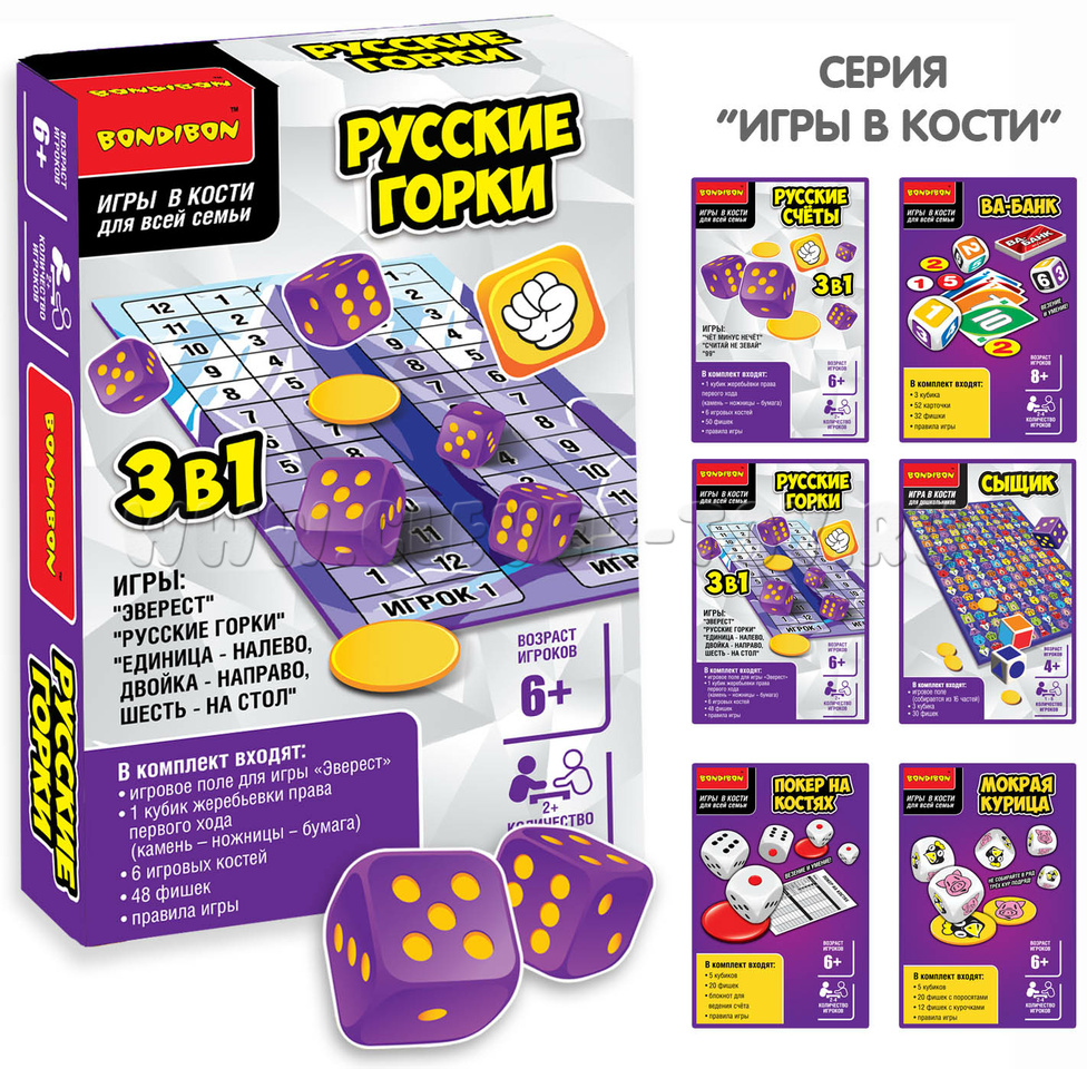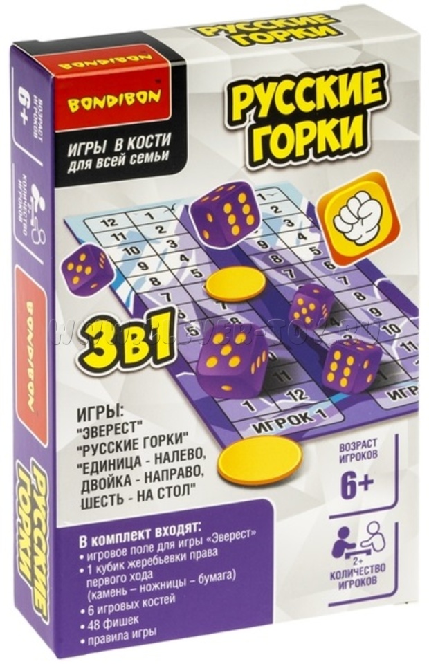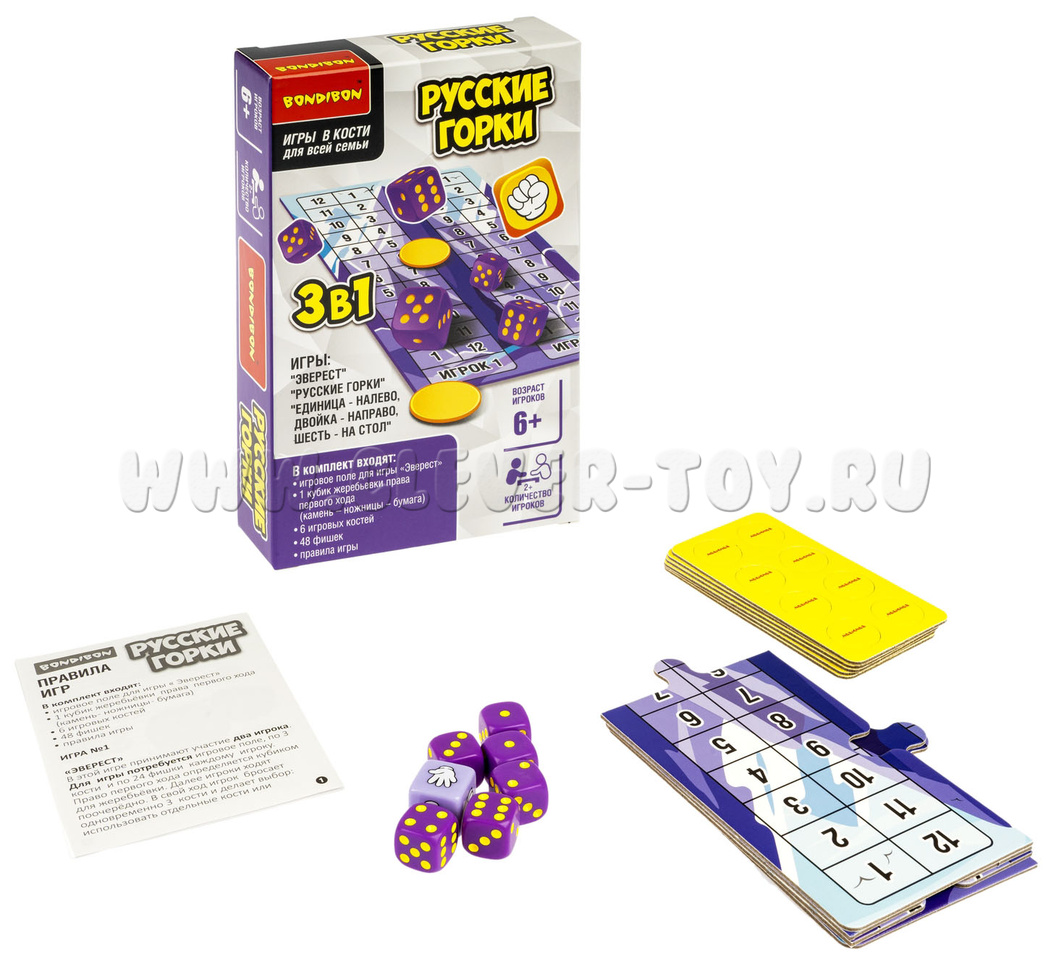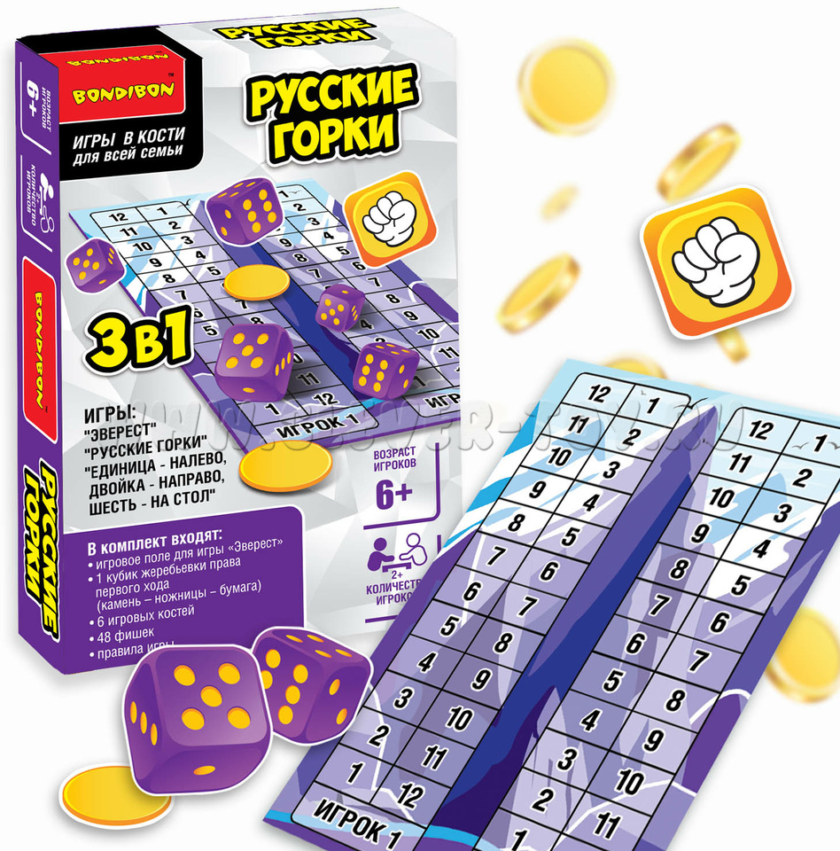 Настольная семейная игра в кости 3в1 "Русские горки"