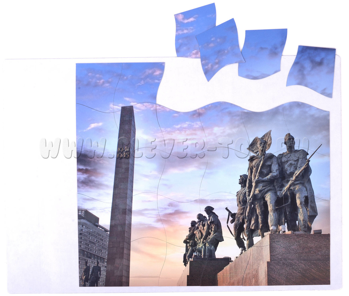 С помощью пазлов можно украсить школьную доску ко Дню Победы 9 мая. Пособие подходит для старшей группы детского сада и знакомит детей с памятниками Великой Отечественной войны.