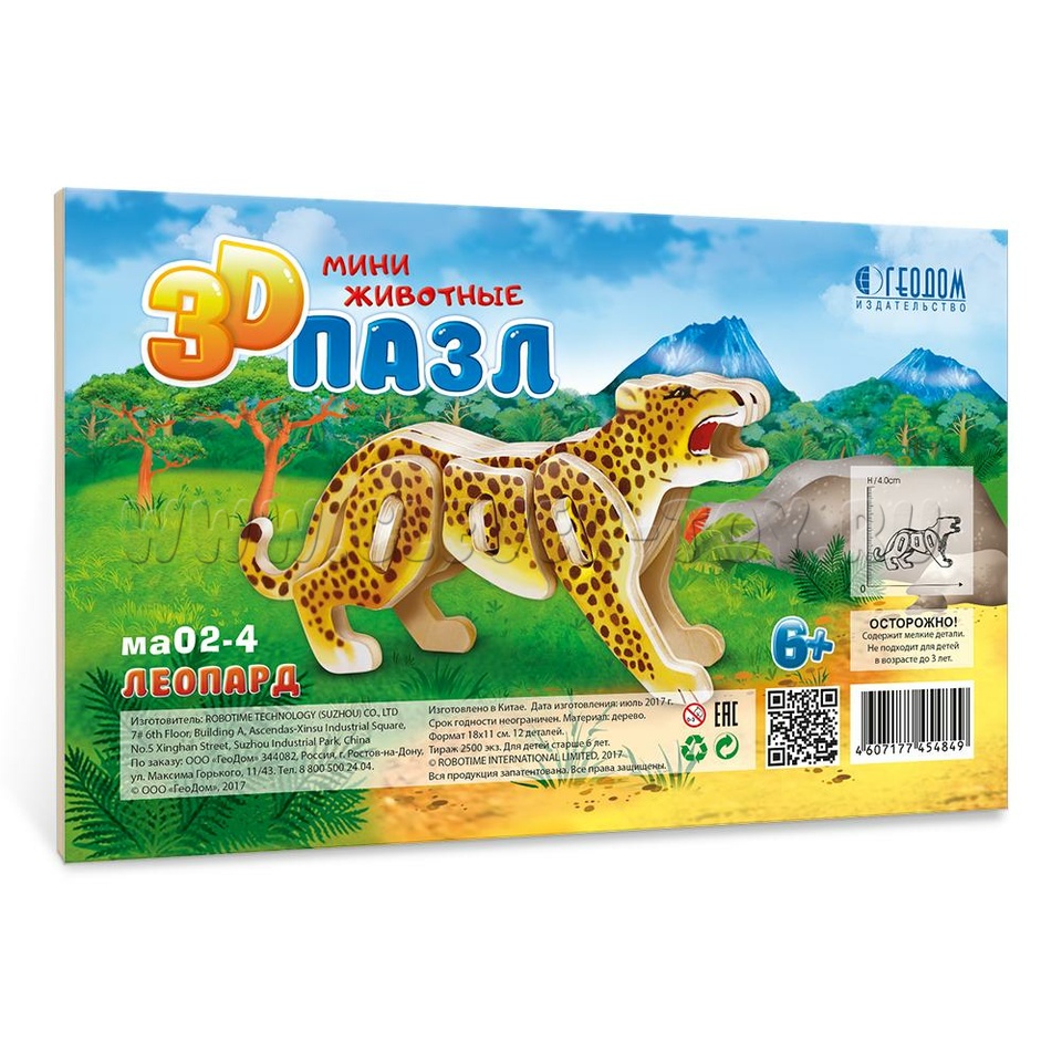 Пазл деревянный 3D. Леопард. Серия Мини-животные. Размер 11,5х18,5 см.