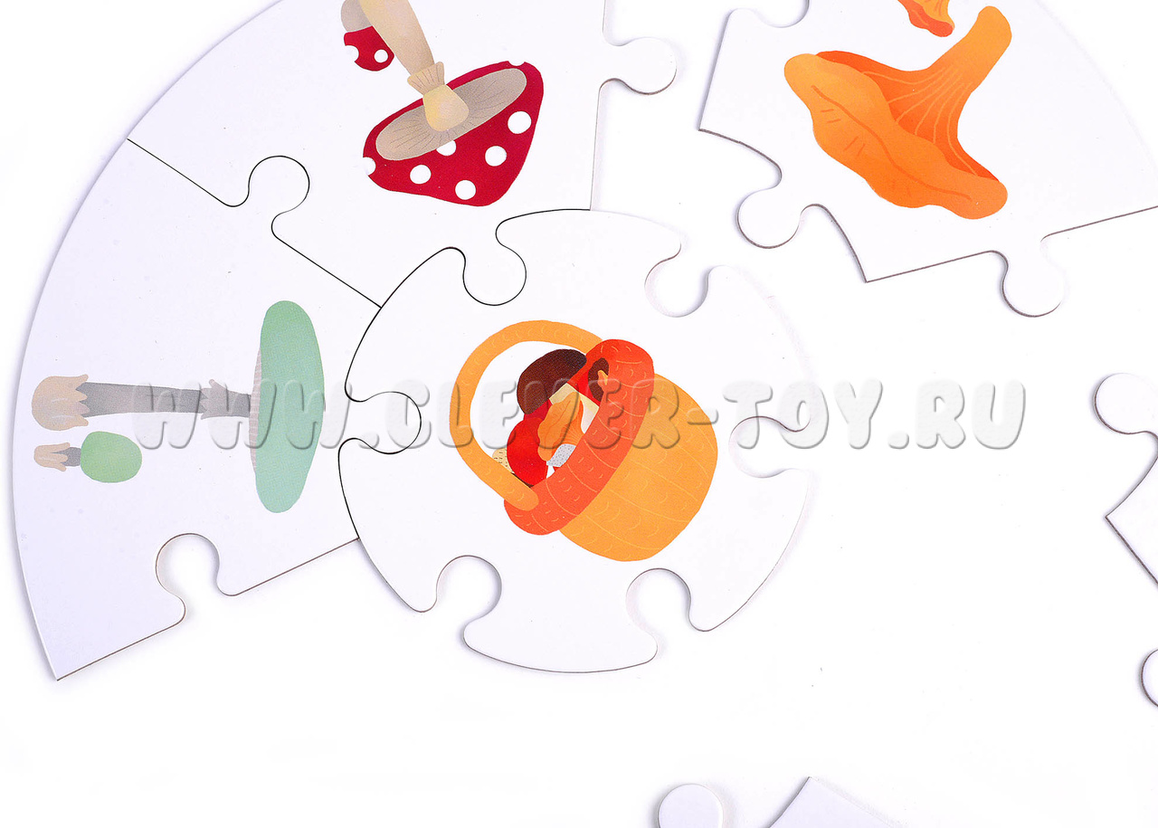 В наборе 6 двухсторонних пазлов по 7 элементов.