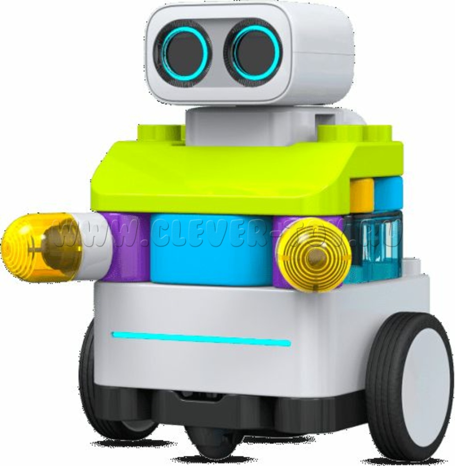 Второй робот состоит из программируемого контроллера и достаточно крупных пластмассовых деталей из которых можно собрать до 8 различных конфигураций. Робот знакомит детей с основами конструирования и программирования. Программирование может быть как безэкранным, пластмассовыми фишками, считываемыми при помощи ресурсного дополнения с башней и камерой, так и при помощи планшета, программными блоками. Ресурсный набор деталей, входящий в комплект, позволяет проектировать и создавать различные простые механизмы, расширяя возможности конструирования. Все создаваемые механизмы могут работать по программе.