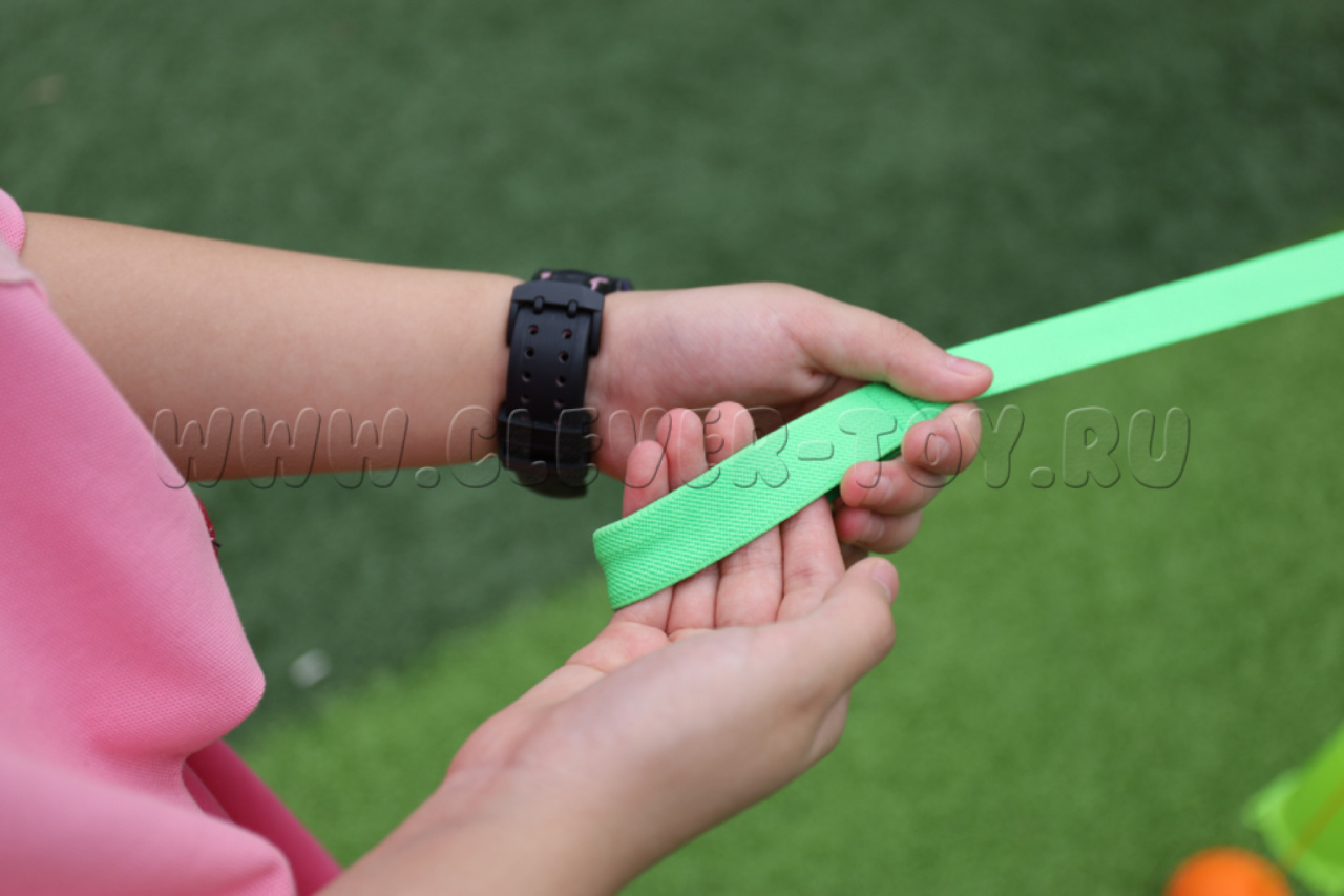 Игровой набор "Эстафета" состоит из кеглей и мячика, подвешенного на ремнях. Играют парами.
