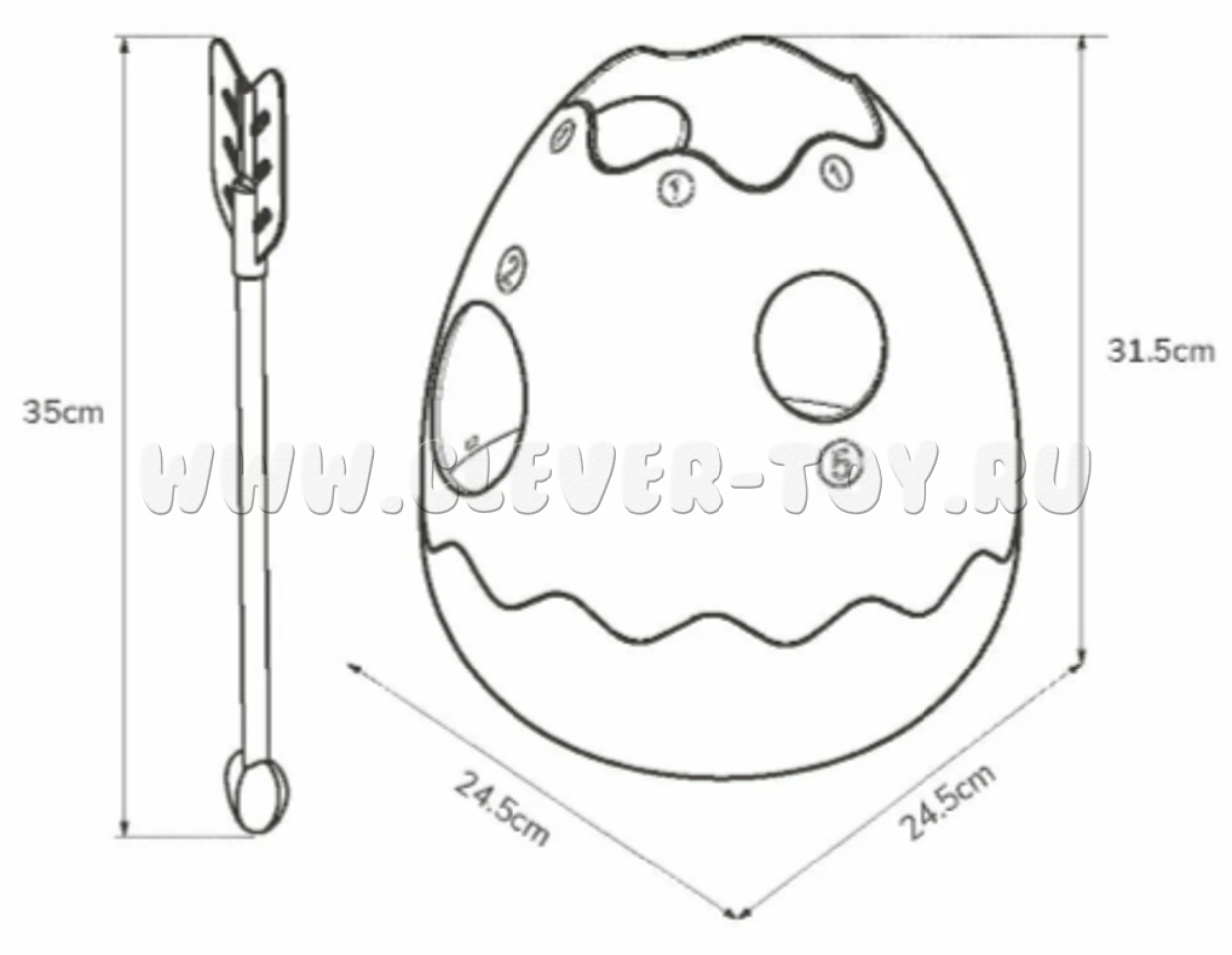 Размер яйца: 24,5 * 24,5 * 31,5 см.