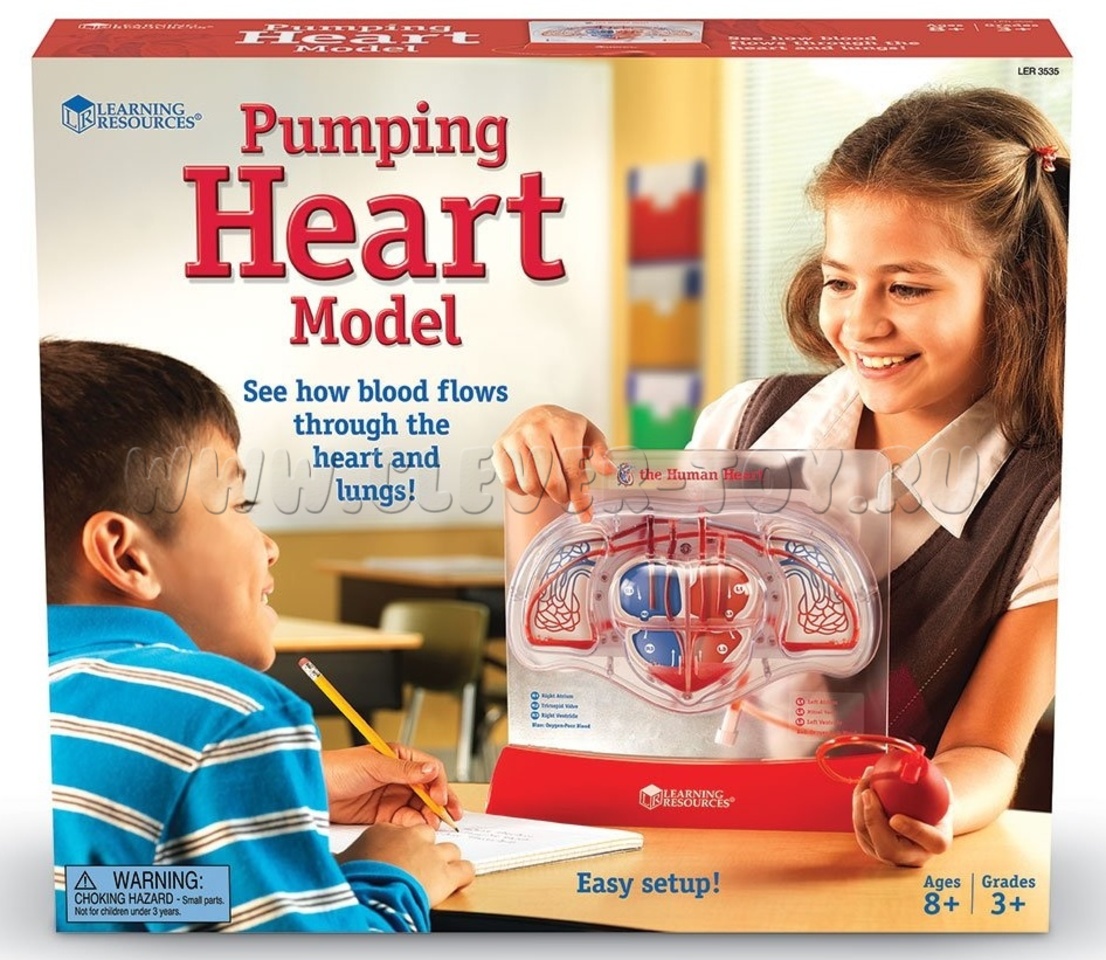 Присутствуют четко обозначенные сердечные камеры, основная артерия, вены и легкие, 10 упаковок красителя и руководство по использованию.
