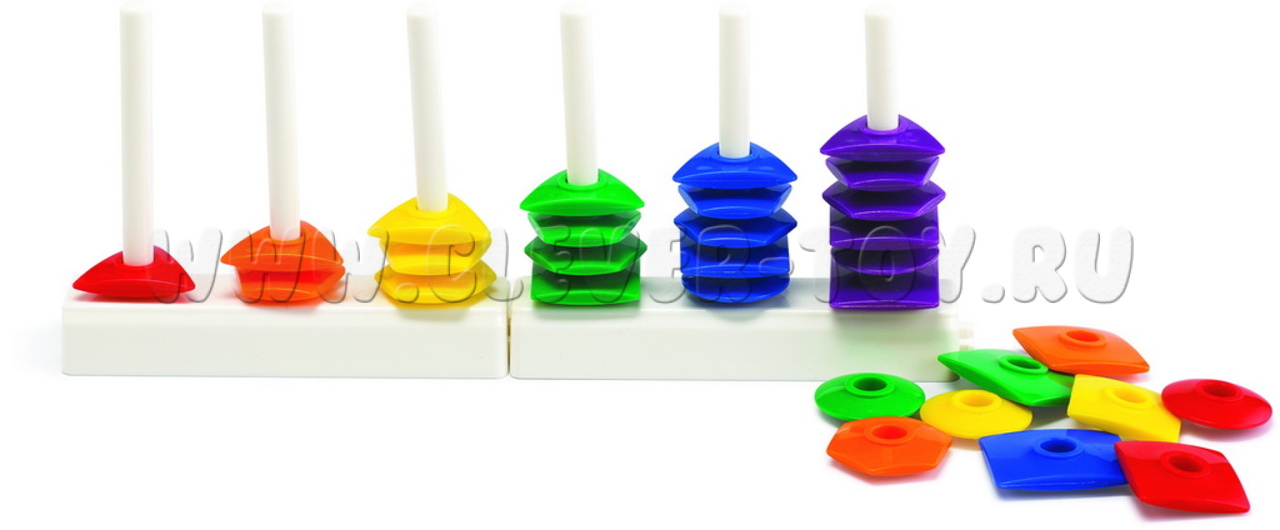 - 2 соединяющиеся между собой подставки, имеющие по 3 стержня для нанизывания деталей;